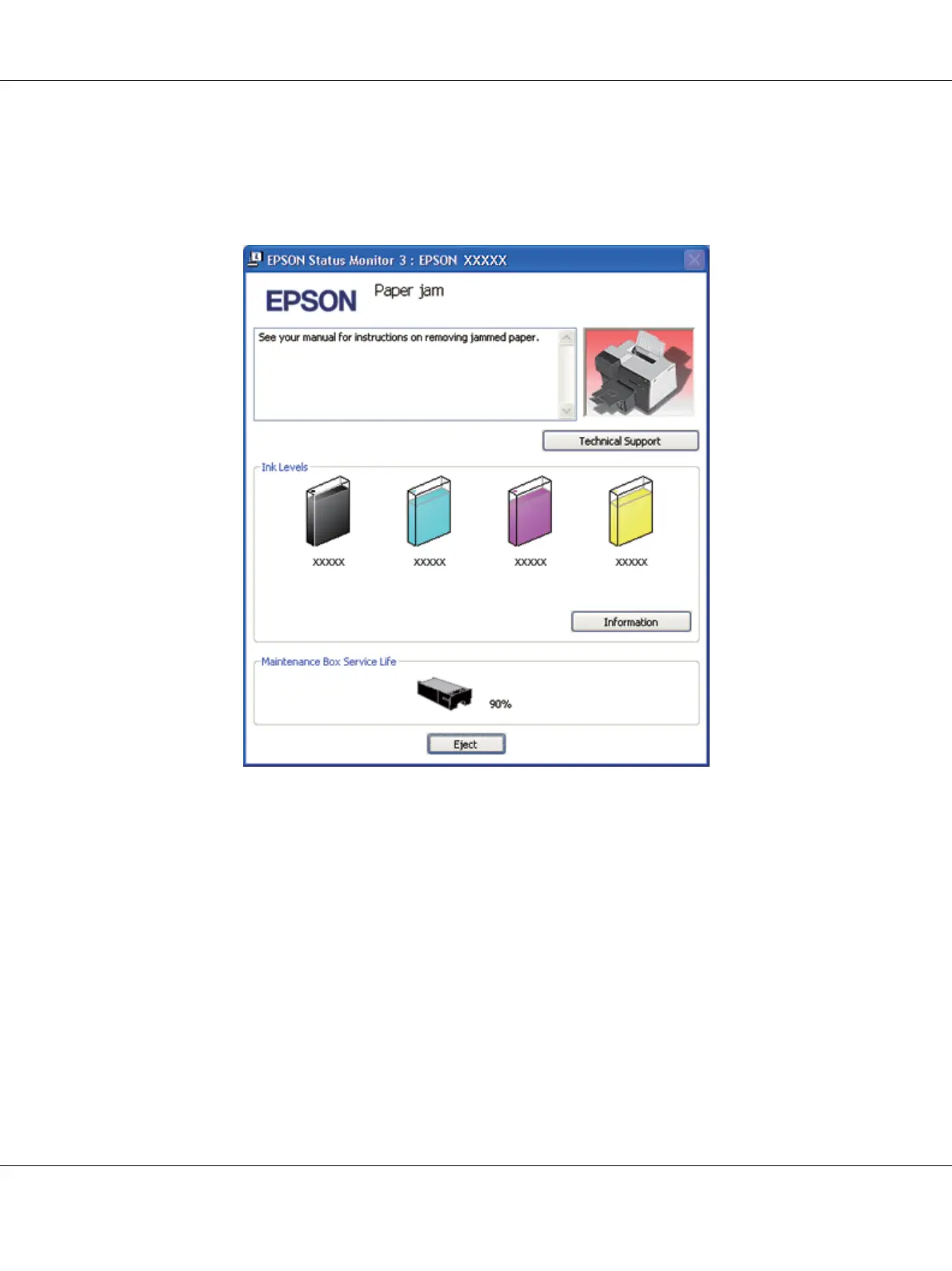 EPSON Status Monitor 3 displays detailed information on the printer status.
