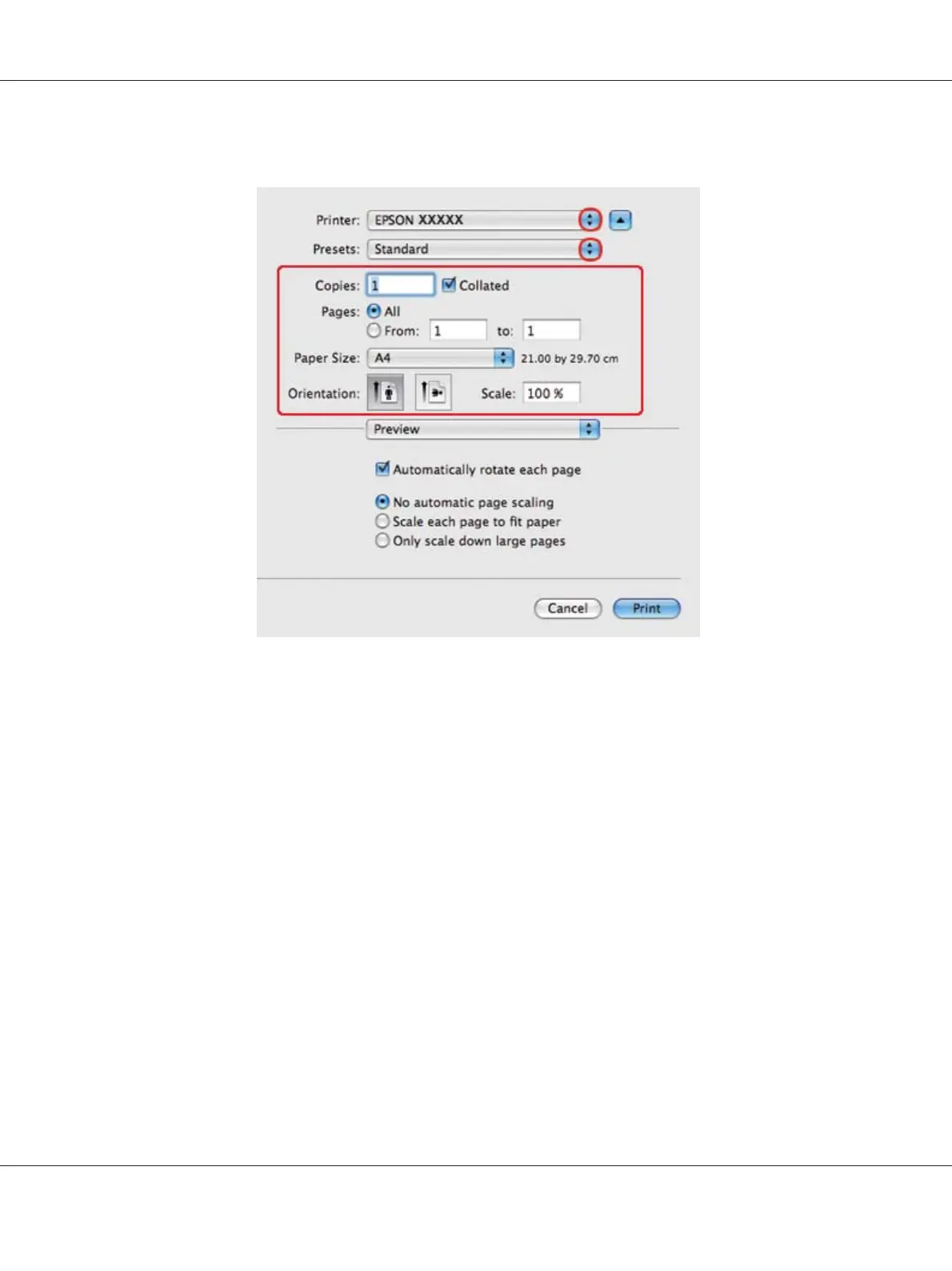 4. Select the printer you are using as the Printer setting, and then make suitable settings.