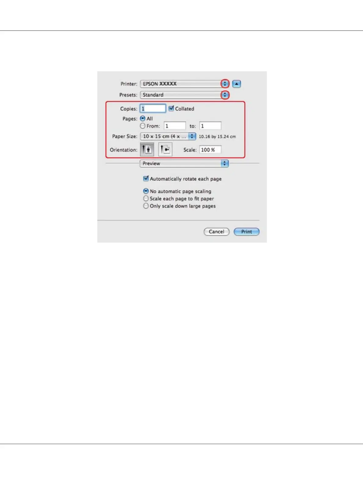 3. Select the printer you are using as the Printer setting, and then make suitable settings.