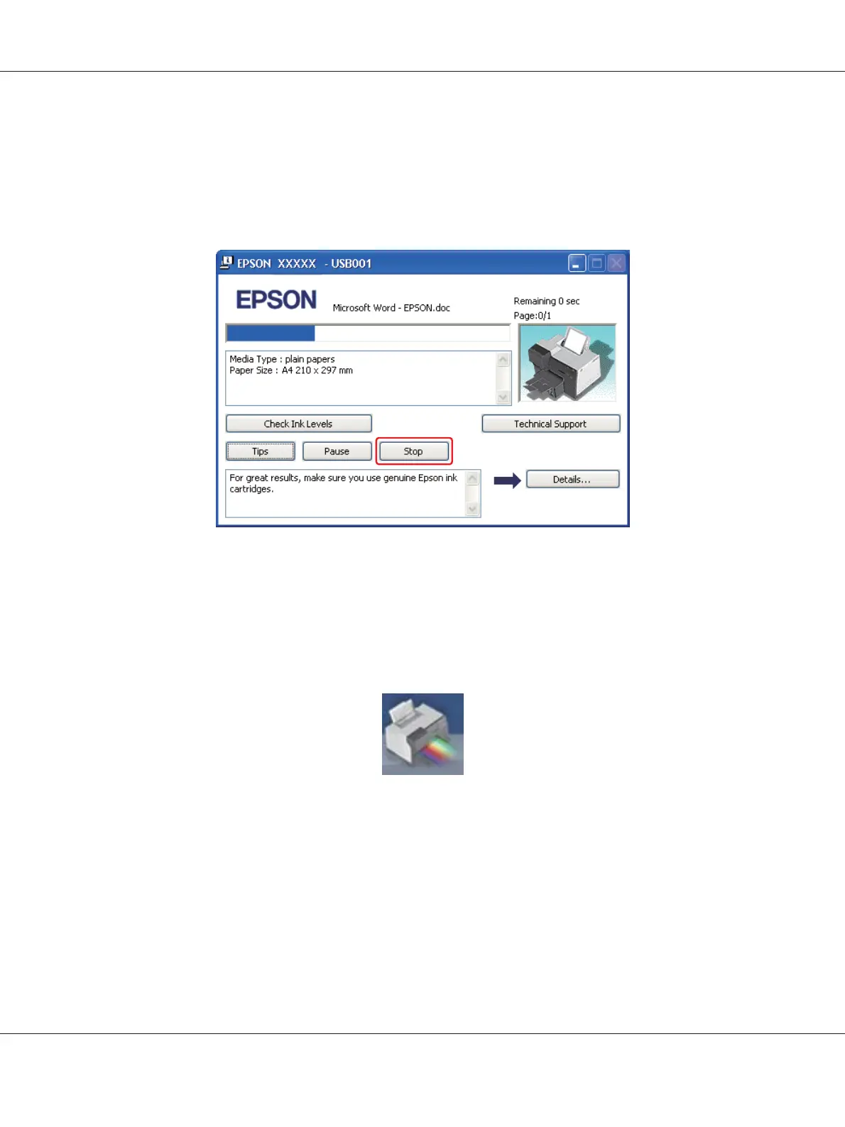 Click the Stop button to cancel printing.