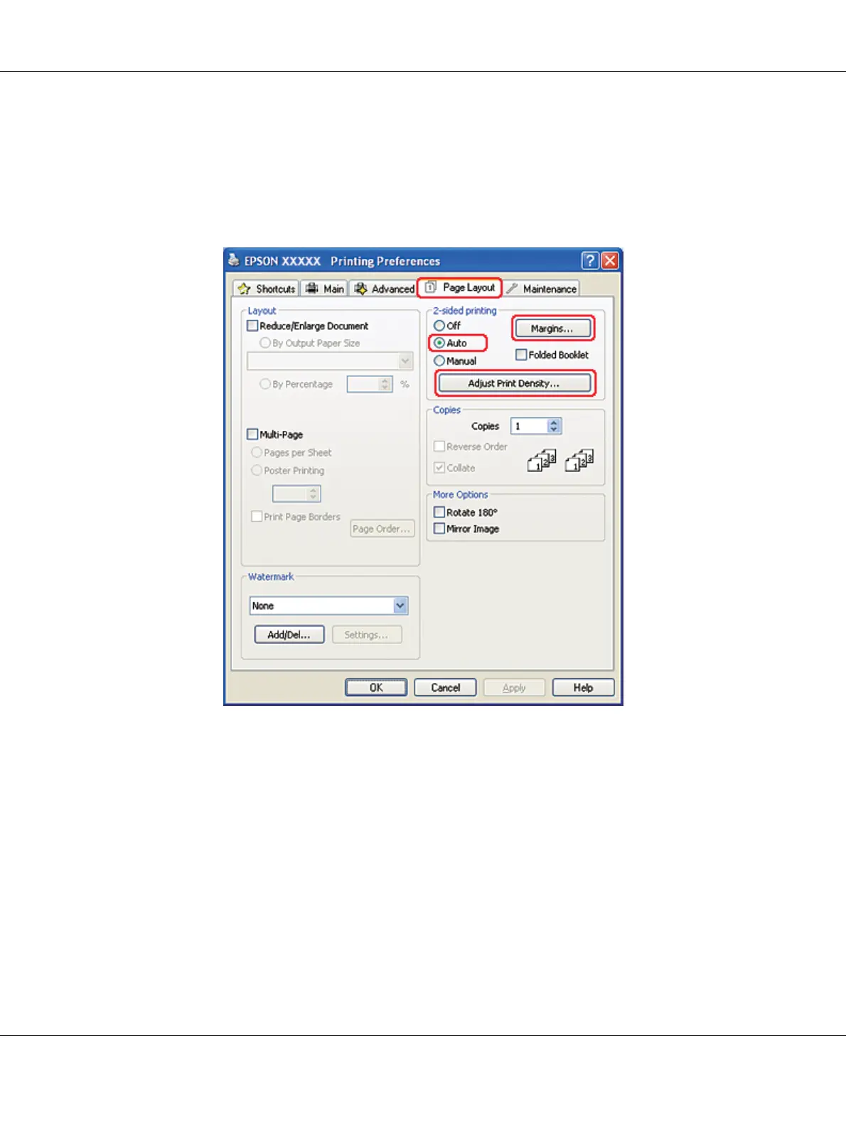 7. Click the Page Layout tab, then select Auto from 2-sided printing.