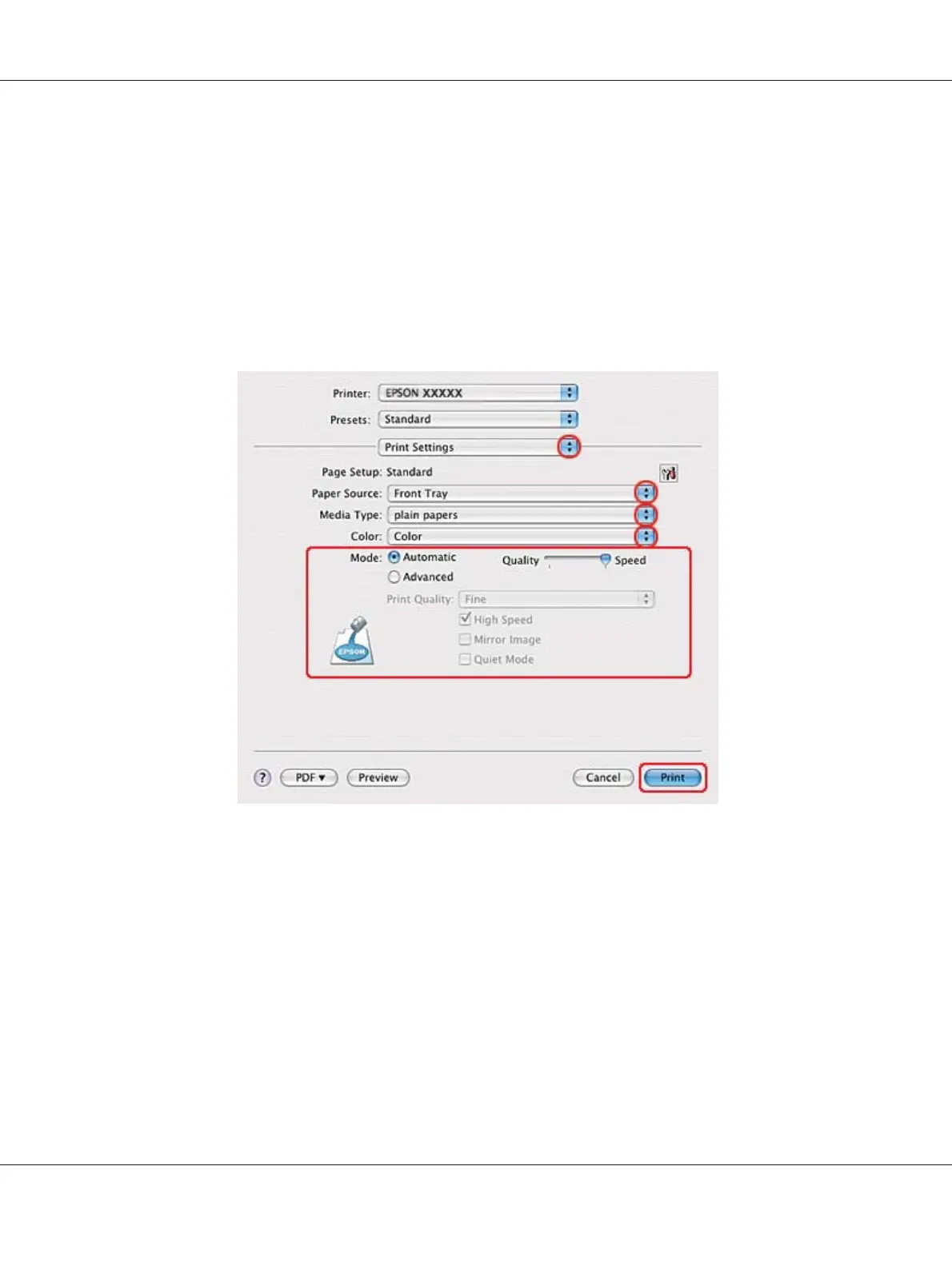 12. Make the settings that you want to use to print. See online help for details of Print Settings.