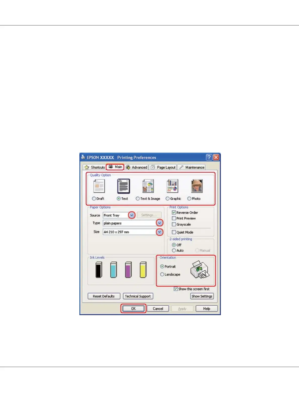 2. Click the Main tab, then select one of the following Quality Option settings:
