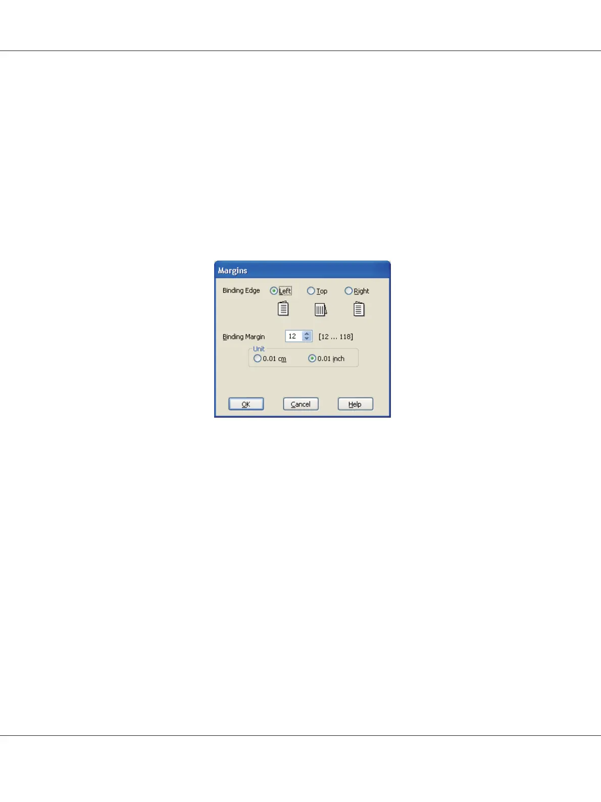 14. Choose cm or inch as the Unit setting. Specify the width of the binding margin.