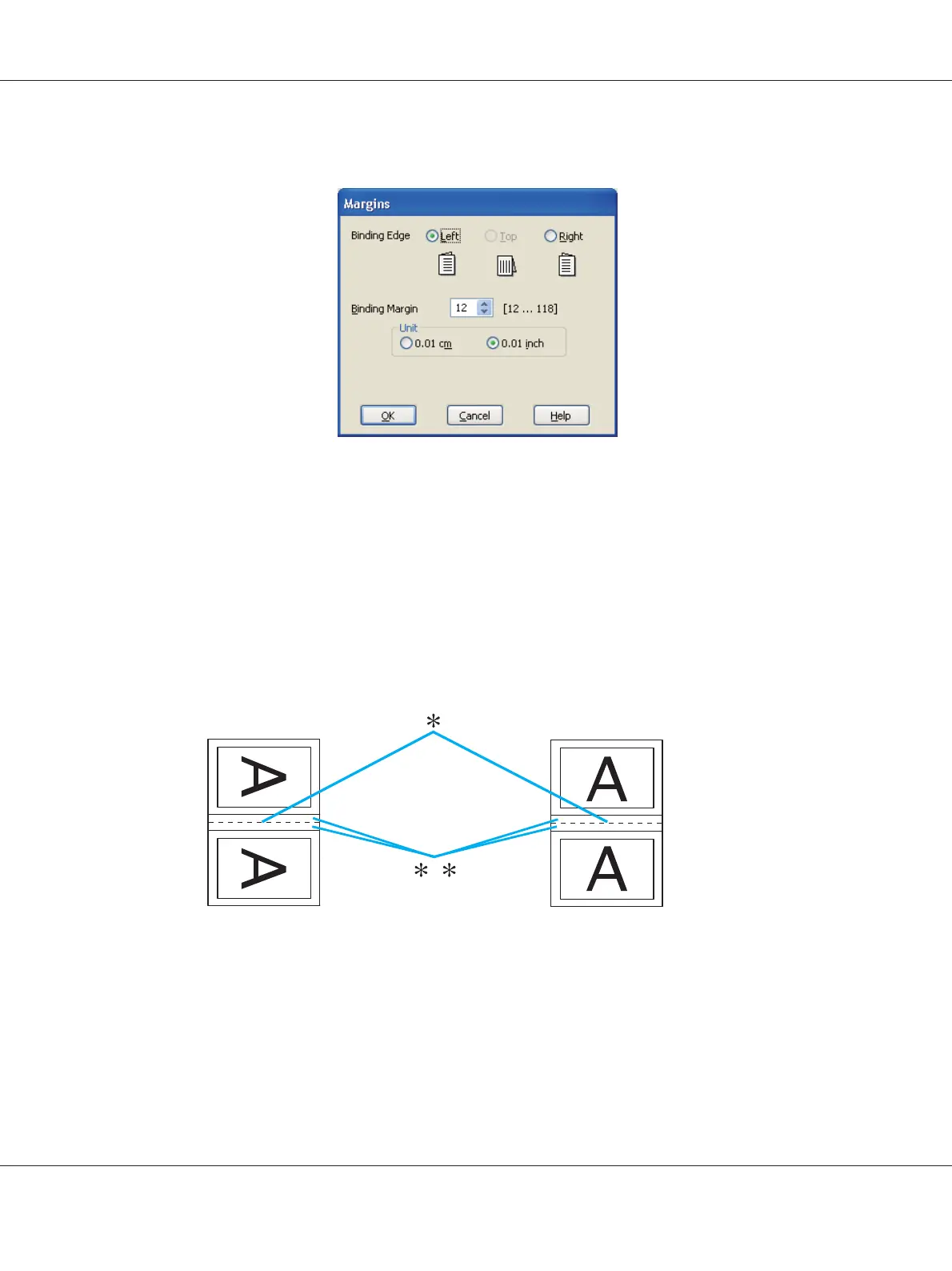 10. Choose cm or inch as the Unit setting. Specify the width of the binding margin.