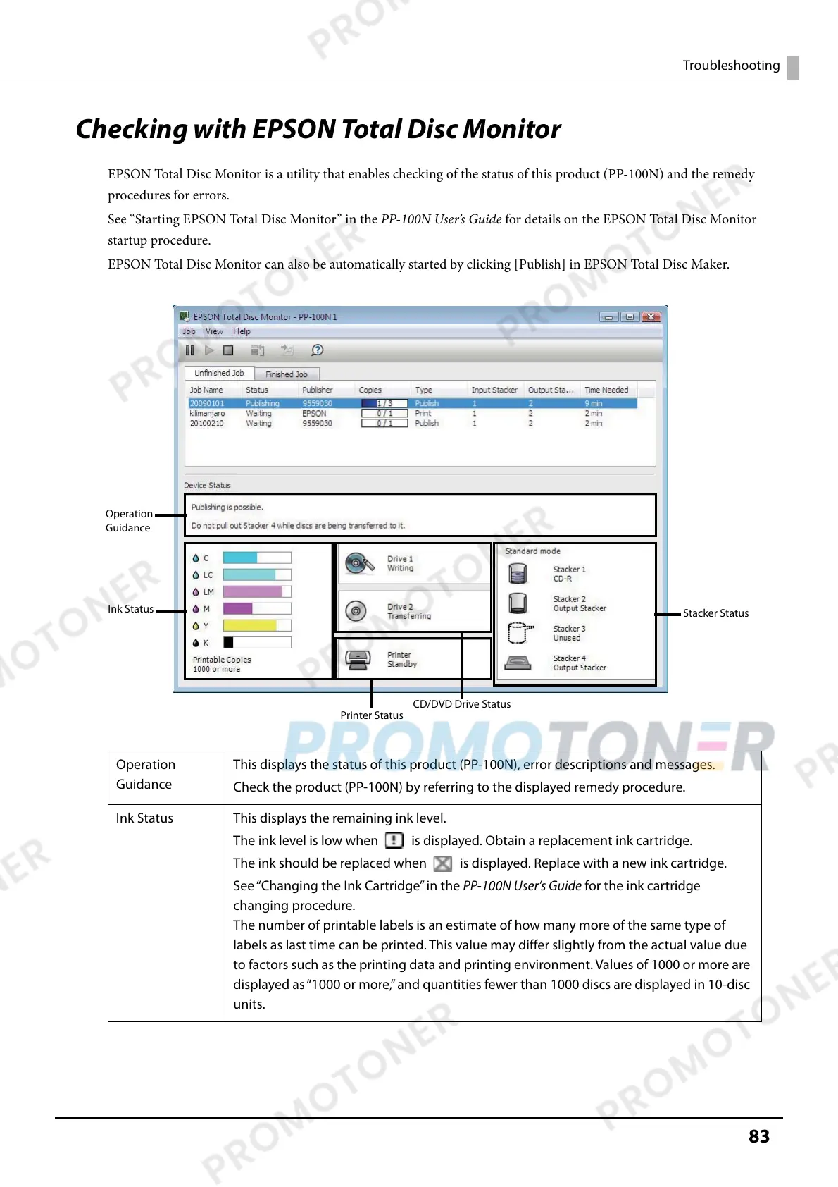 EPSON Total Disc Monitor is a utility that enables checking of the status of this product (PP-100N) and the remedy