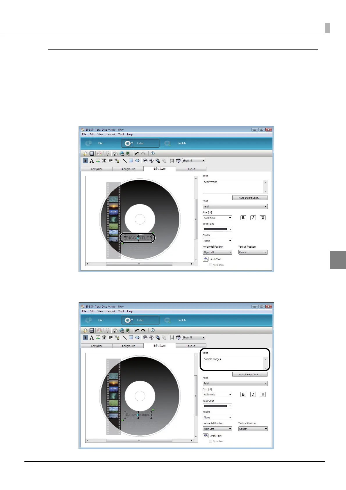 Click [DISC TITLE] in the edit area.