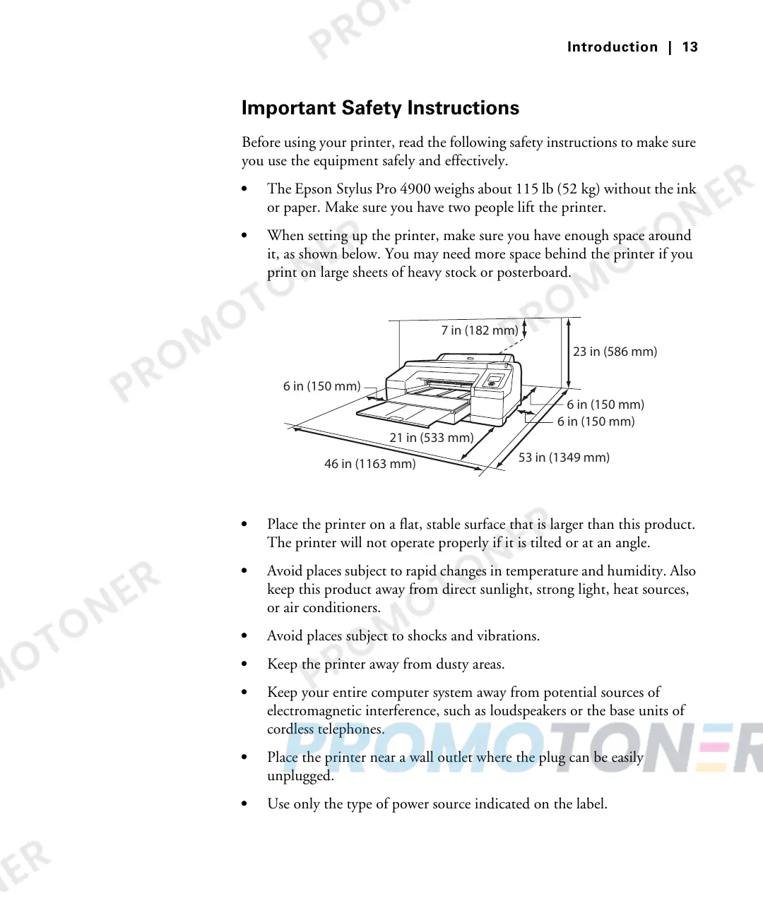 • The Epson Stylus Pro 4900 weighs about 115 lb (52 kg) without the ink