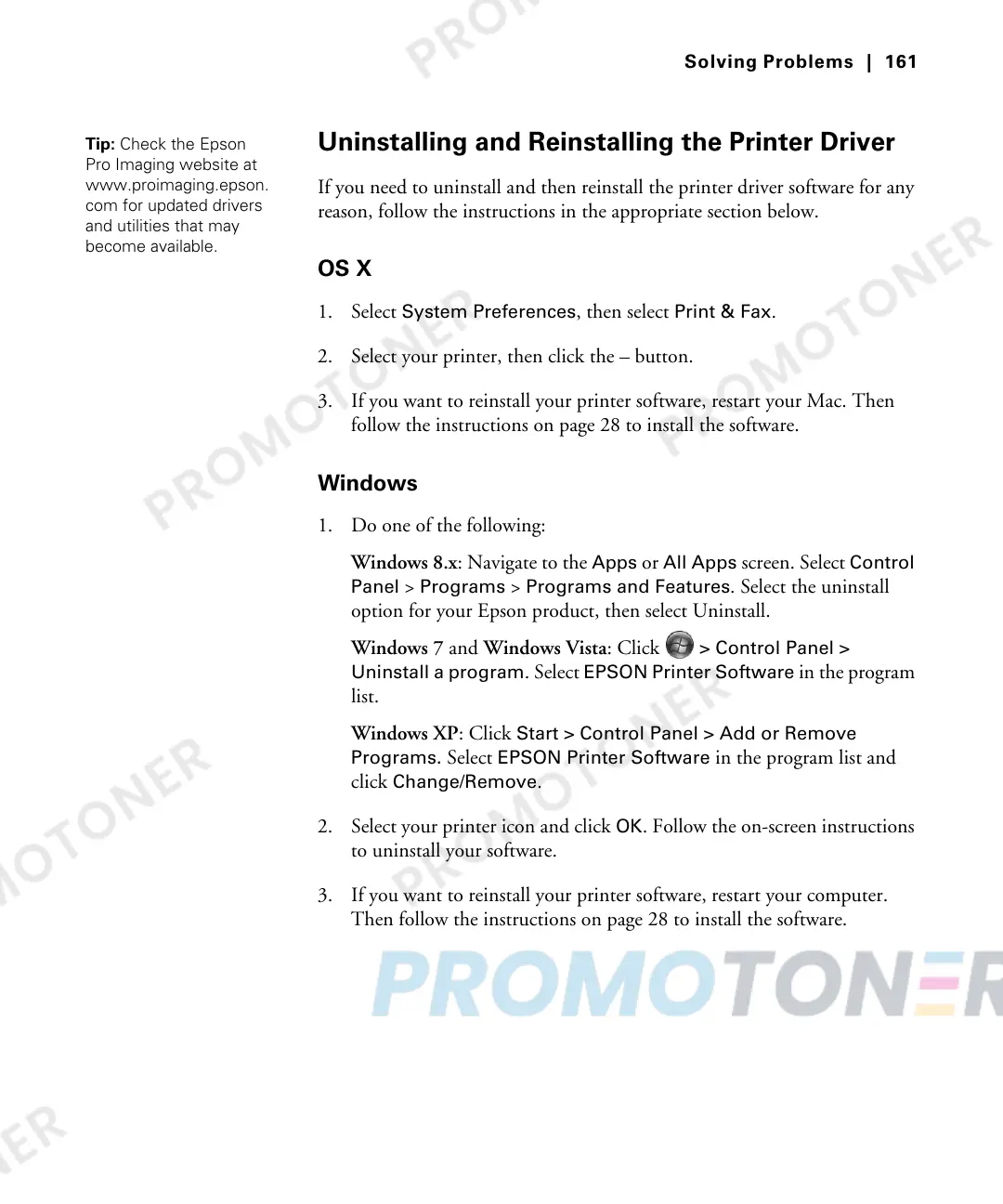 Uninstalling and Reinstalling the Printer Driver