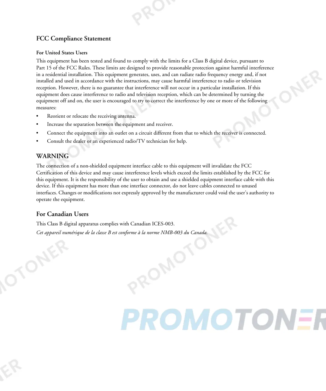 This Class B digital apparatus complies with Canadian ICES-003.