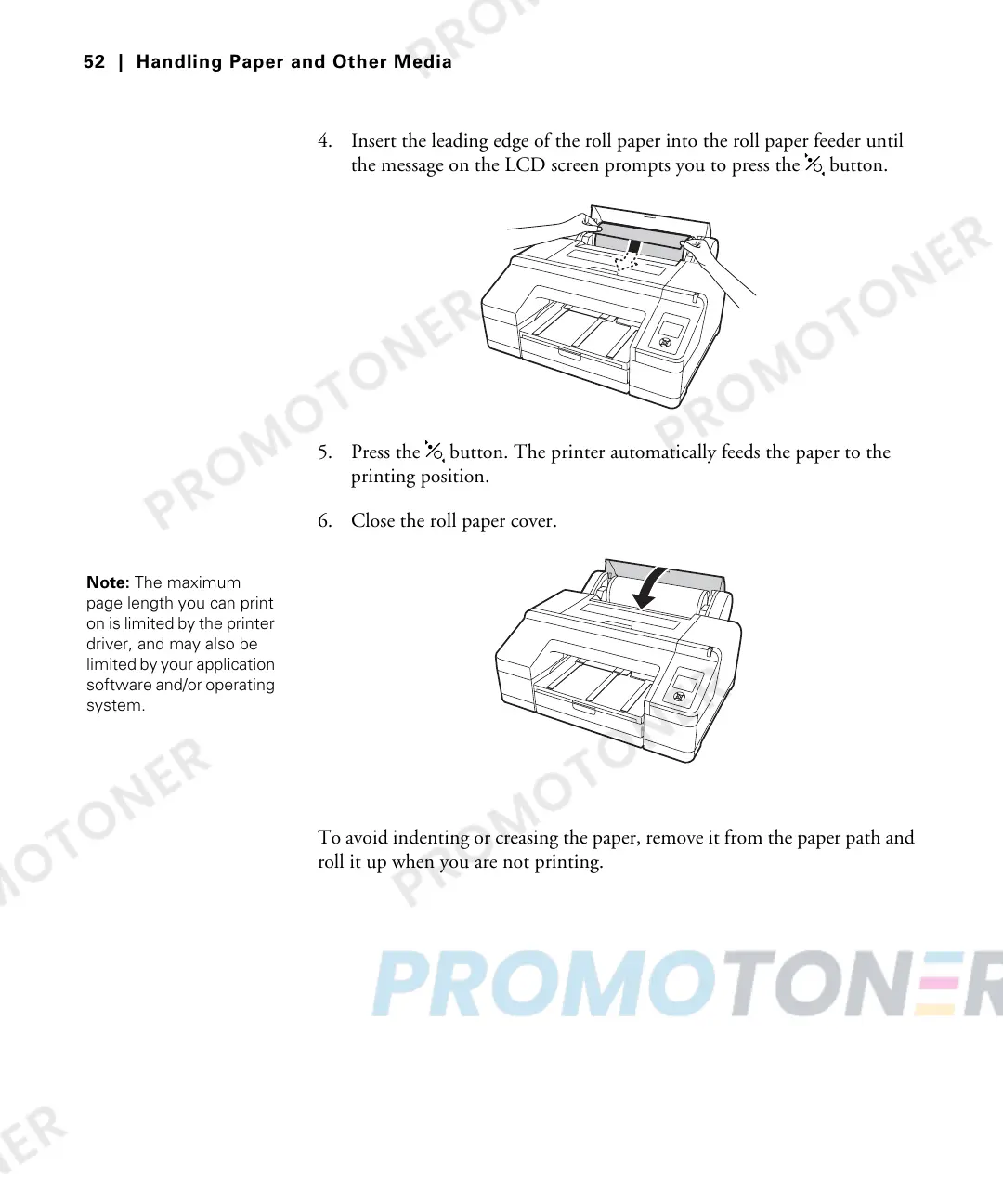 4. Insert the leading edge of the roll paper into the roll paper feeder until