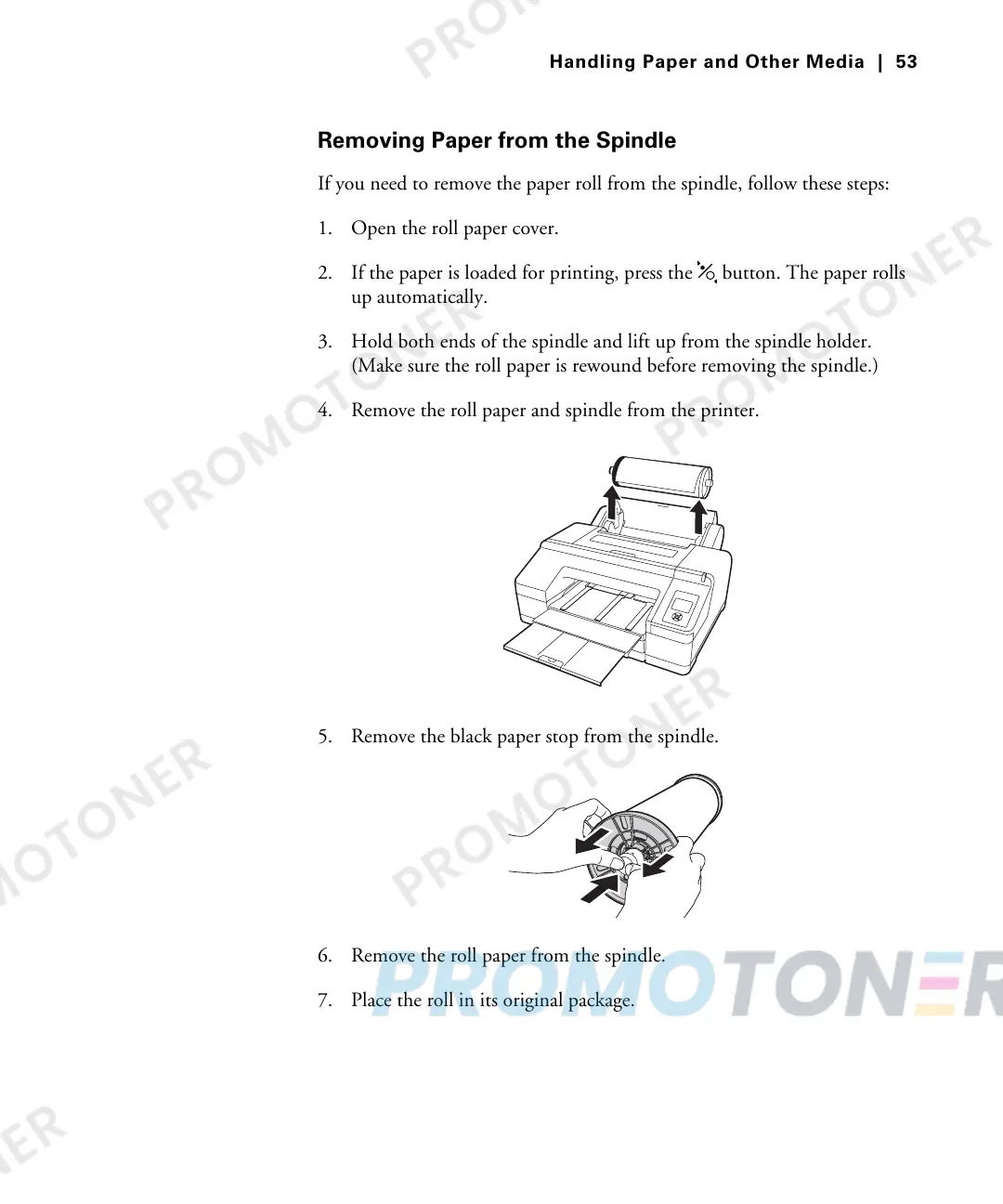 6. Remove the roll paper from the spindle.