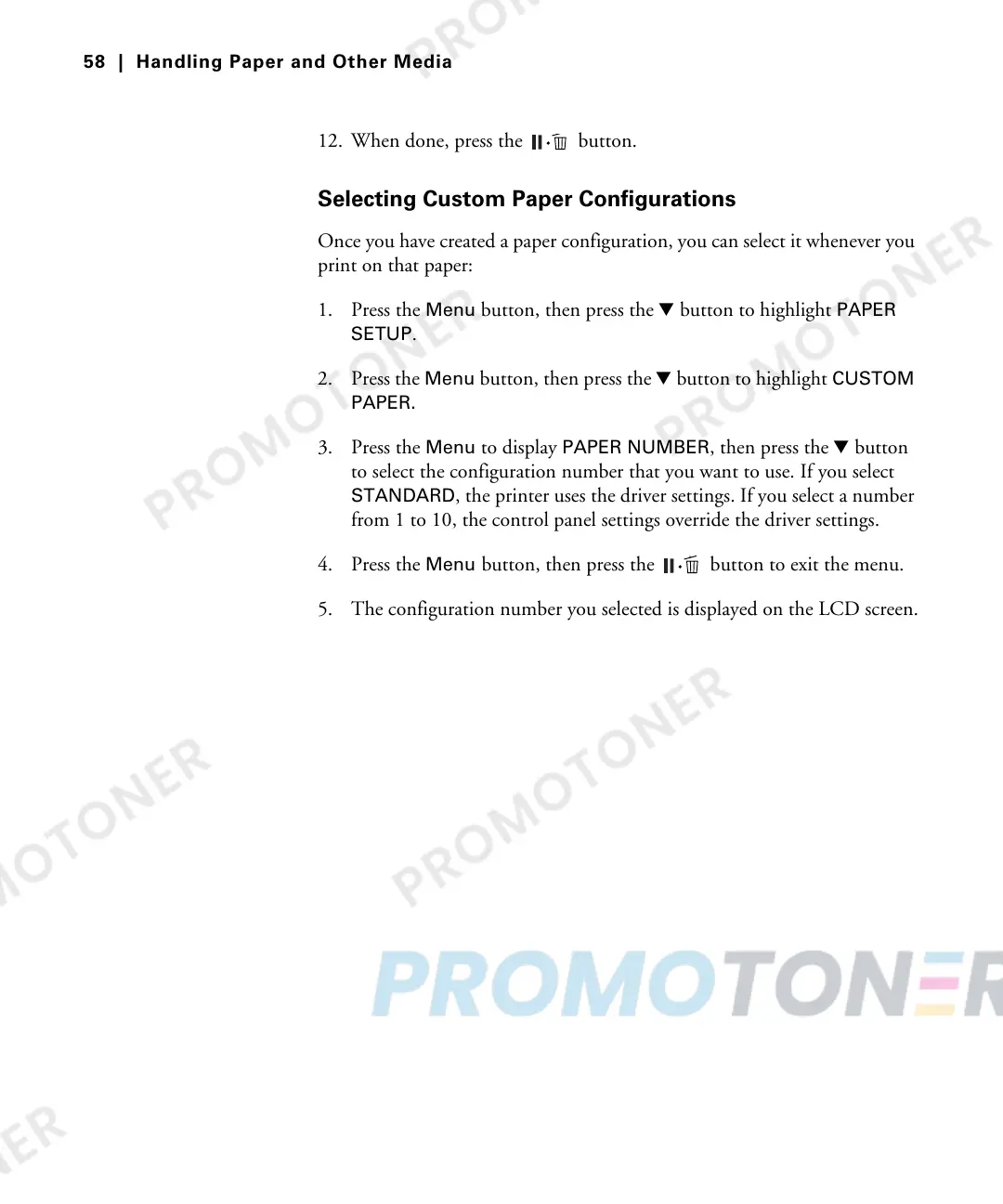 3. Press the Menu to display PAPER NUMBER, then press the d button