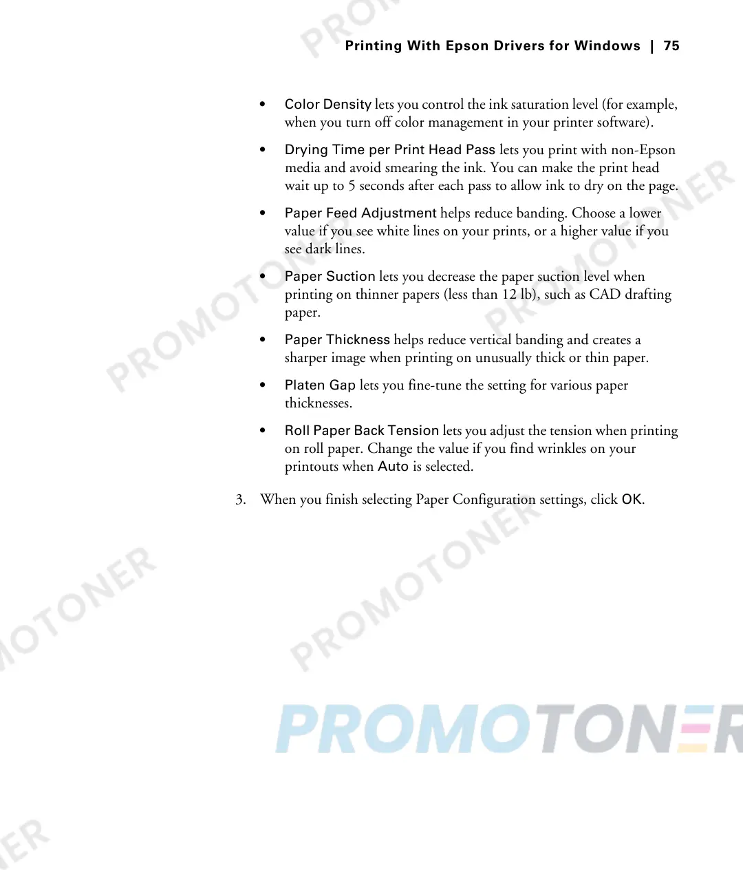 • Paper Thickness helps reduce vertical banding and creates a
