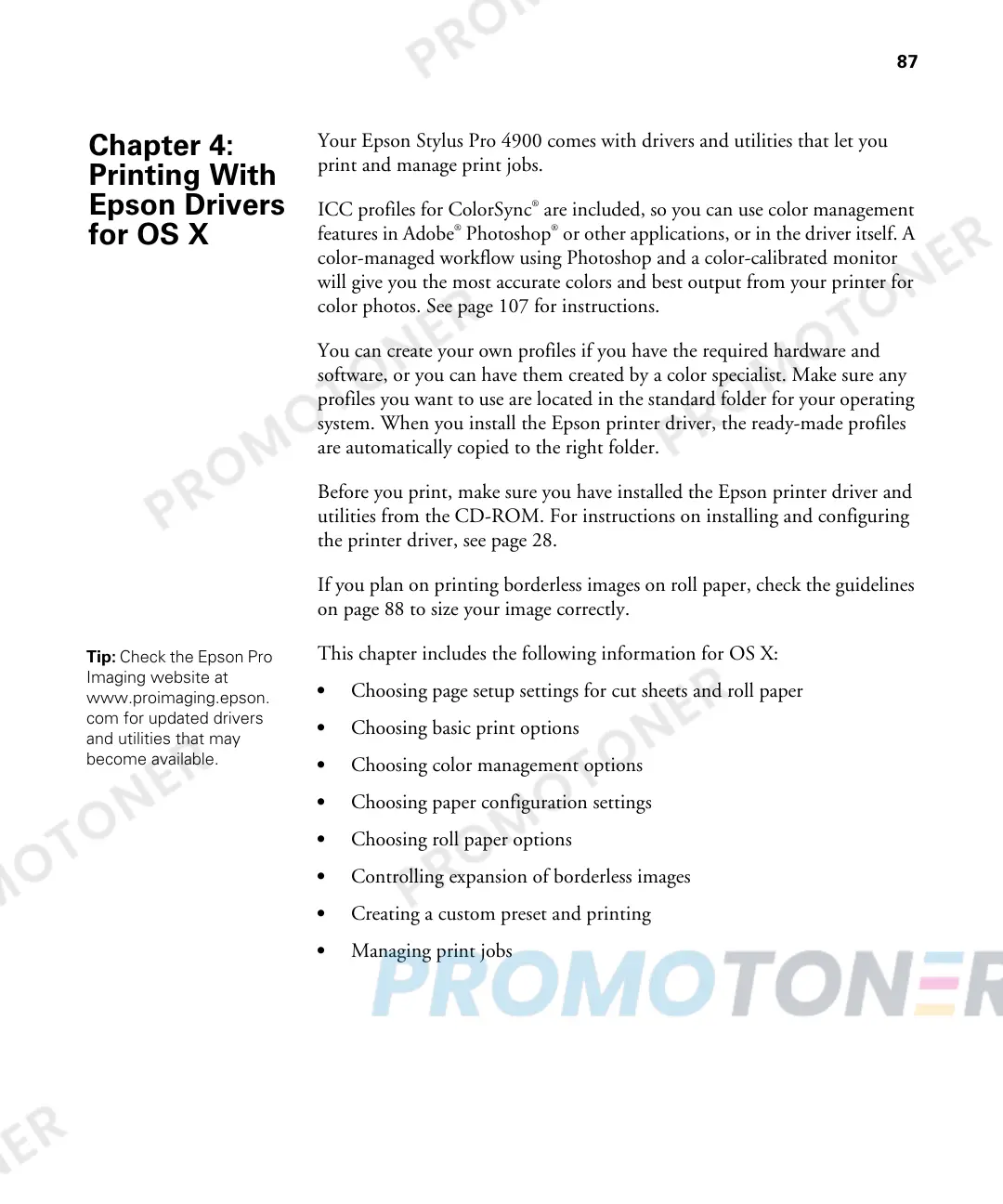 Your Epson Stylus Pro 4900 comes with drivers and utilities that let you