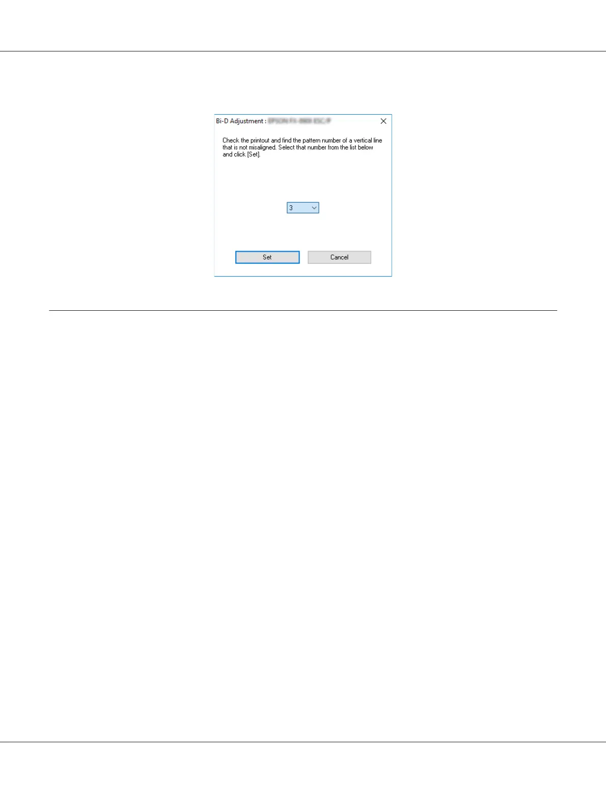 5. Click Set. The adjustment value will be stored in the printer.