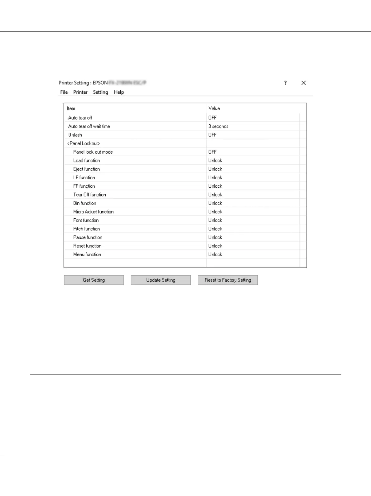To display additional printer default settings, select Setting from the menu at the top of the Printer