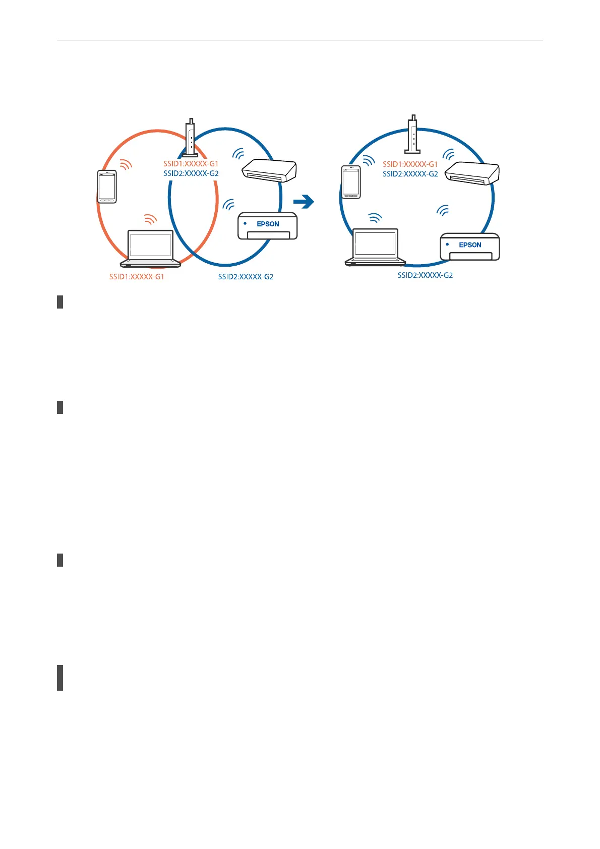 ❏ Connection becomes unstable, the printer is connected and disconnected again and again.