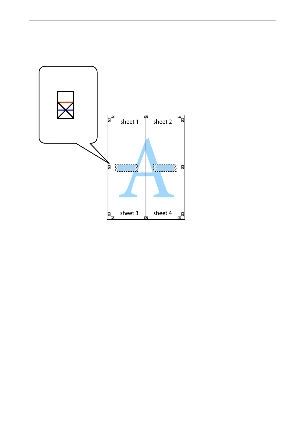 Place the edge of Sheet 1 and Sheet 2 on top of Sheet 3 and Sheet 4 and align the cross marks, and then