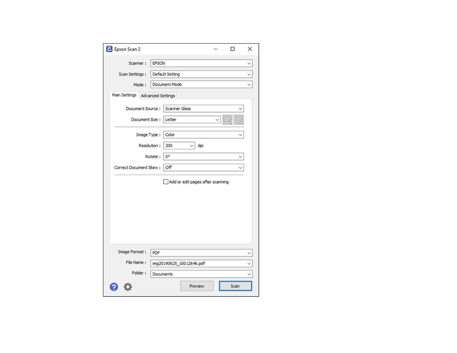 You see an Epson Scan 2 window like this: