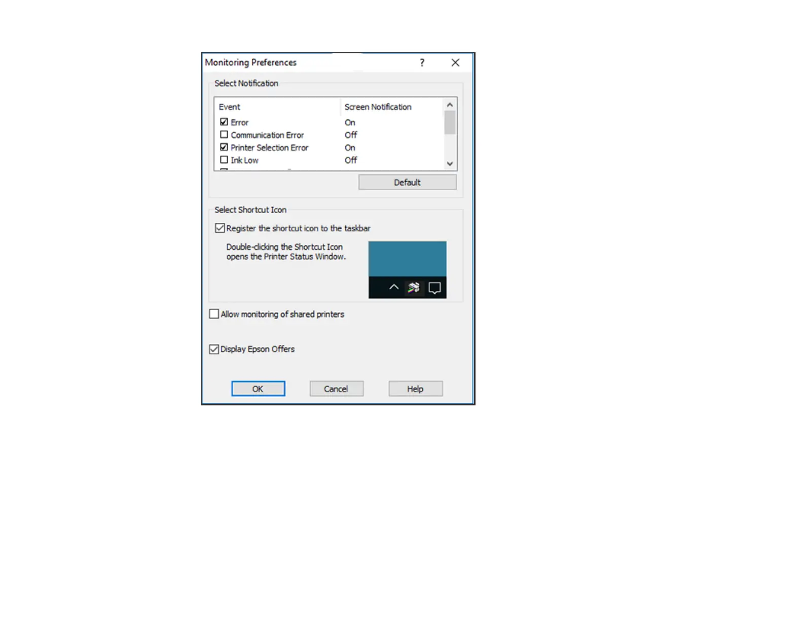 2. To disable promotional offers, deselect the Display Epson Offers checkbox.