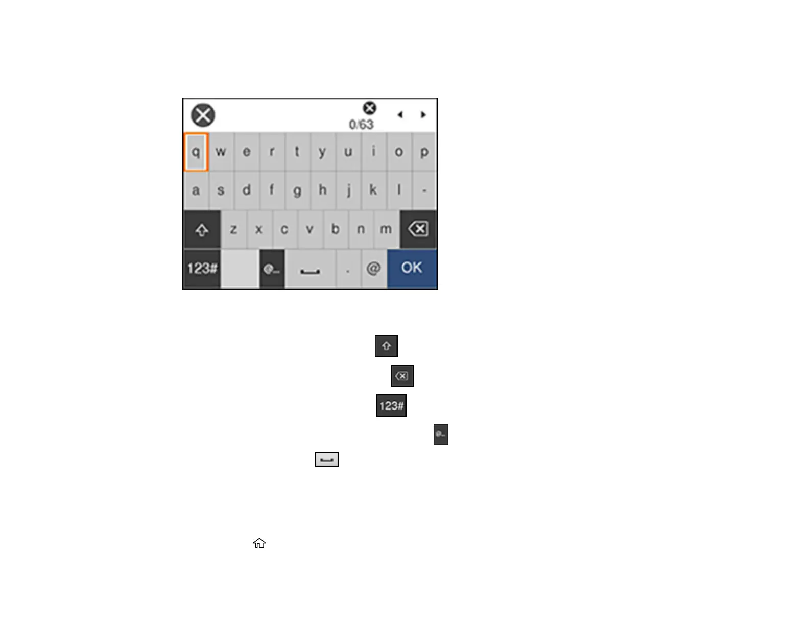 Follow these guidelines to enter characters for passwords and other settings.