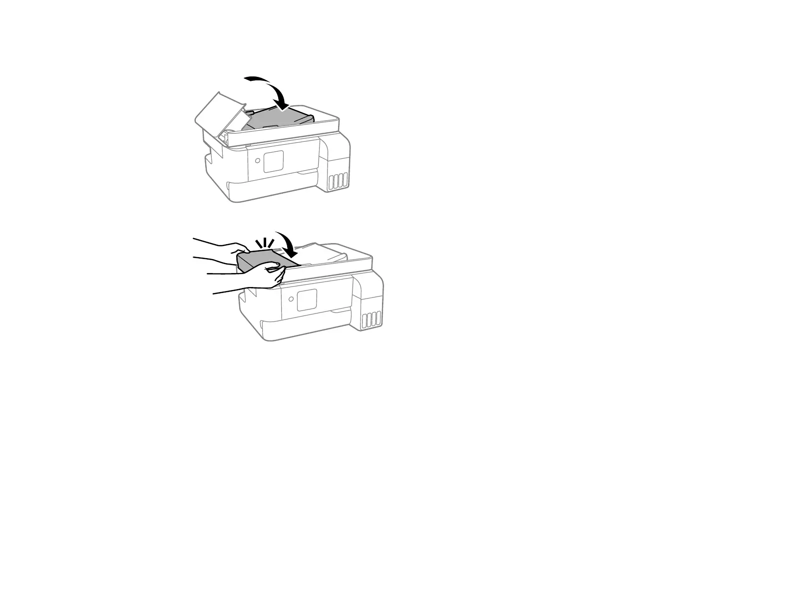 7. Close the ADF input tray, then close the ADF cover until it clicks into place.