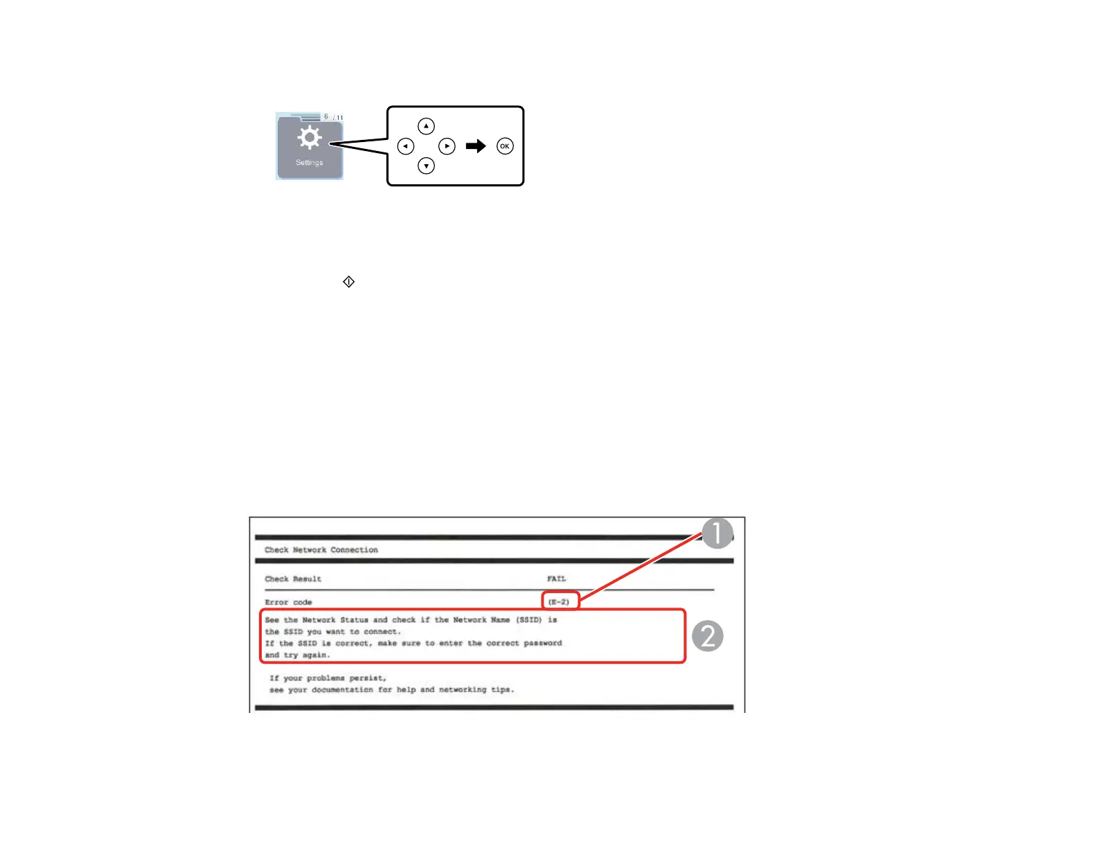 2. Press the arrow buttons to select Settings, then press the OK button.