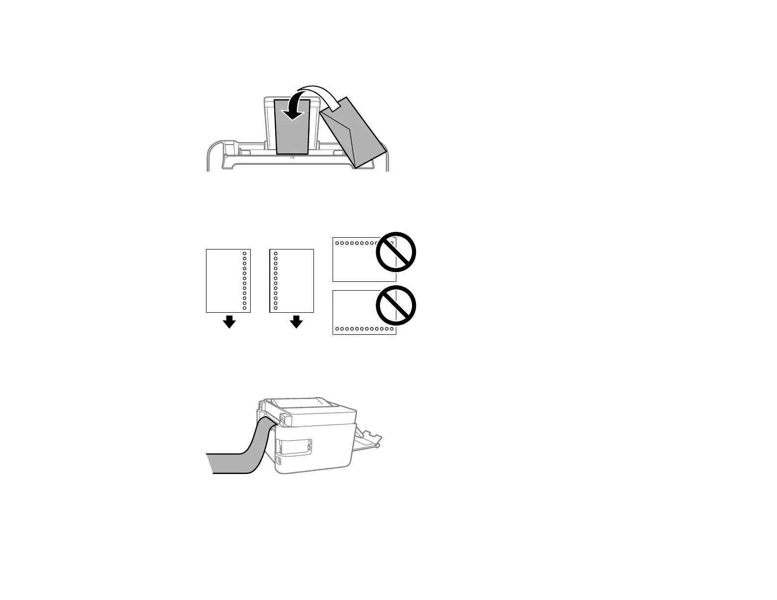 • Load up to 10 envelopes in the center of the rear paper feeder. Load them printable side up, short