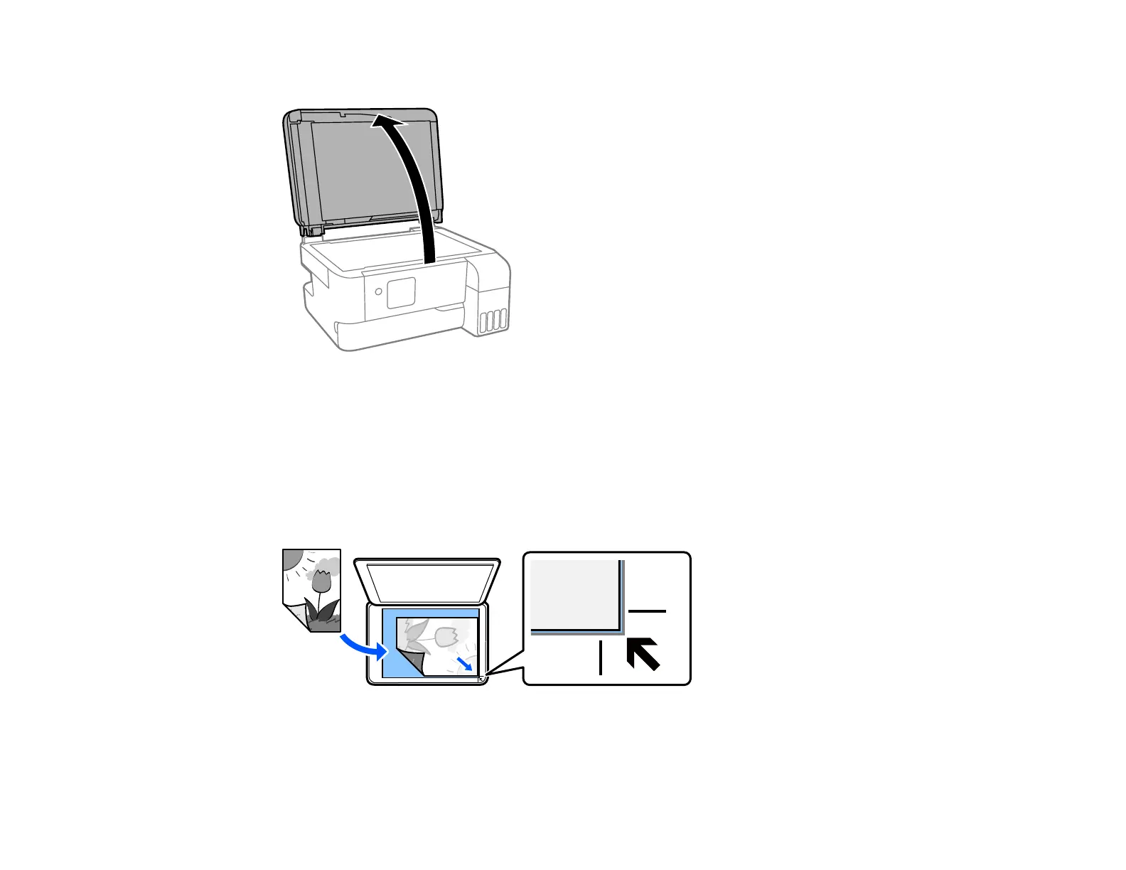 2. Place your original facedown on the scanner glass with the top facing into the corner. Slide the