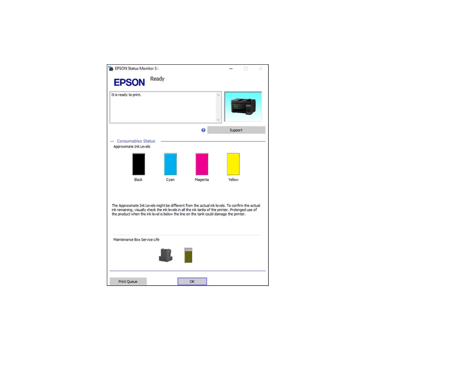 During printing, you see this window showing the progress of your print job. It allows you to control