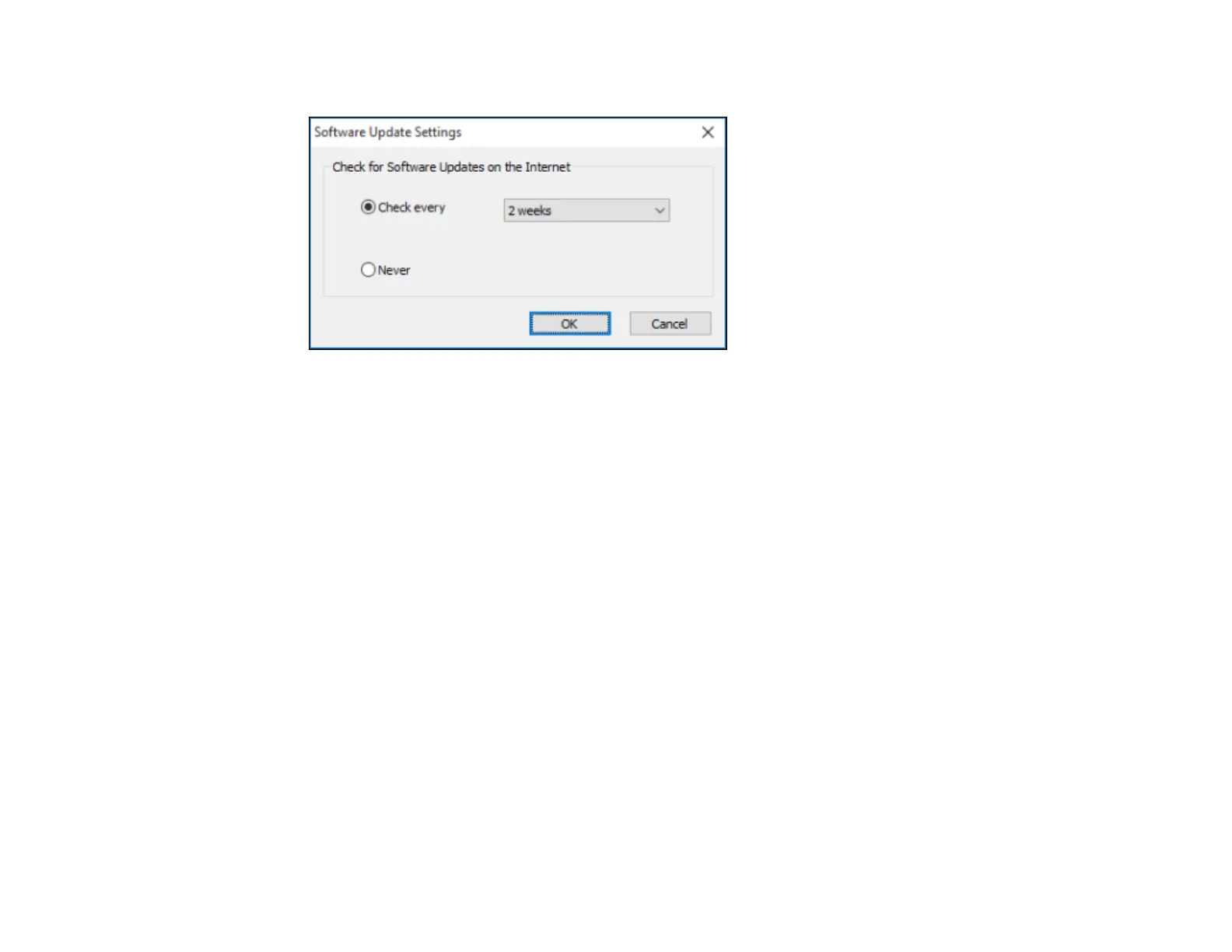 • To change how often the software checks for updates, select a setting in the Check every menu.
