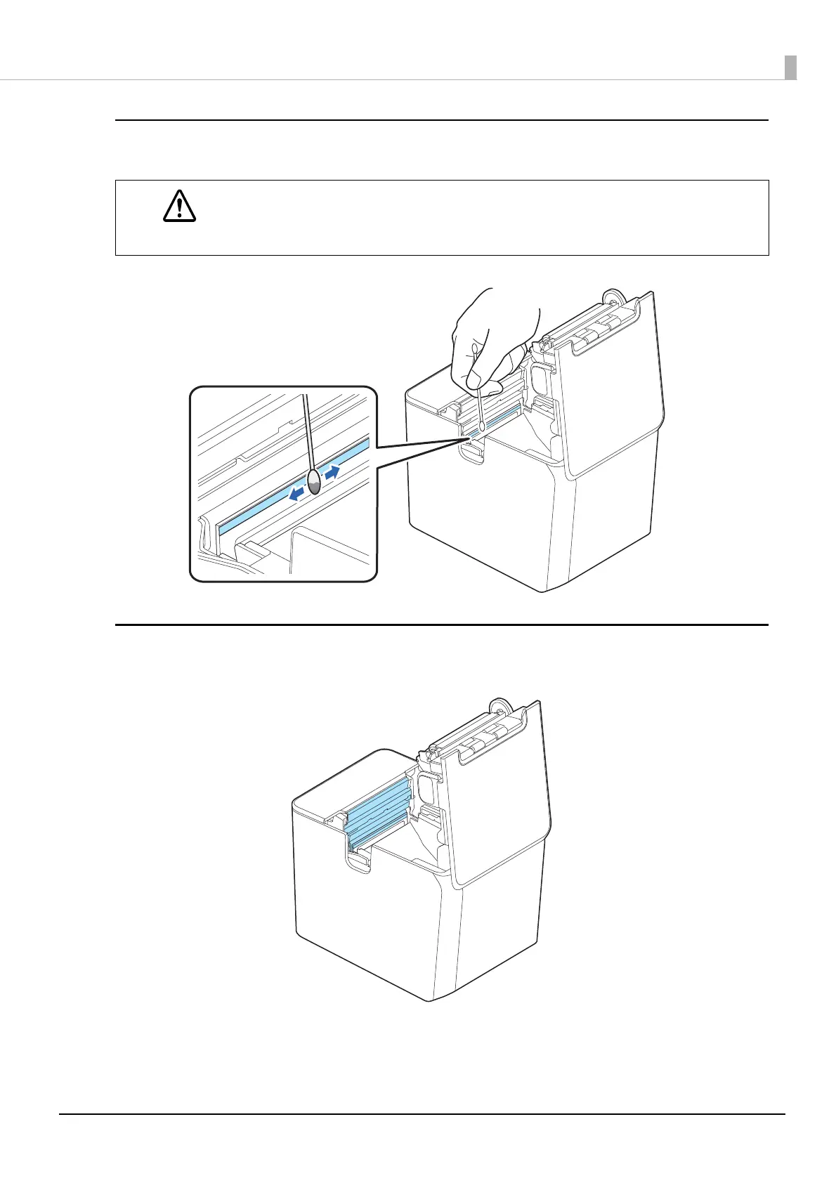 Clean the thermal head with a cotton swab moistened with an alcohol solvent (ethanol or IPA).