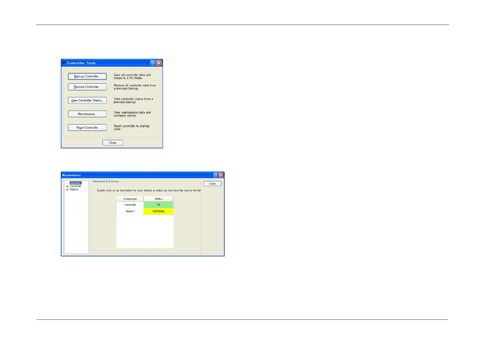 2. To check the Controller maintenance information, click the <Maintenance> button and display the [Maintenance] dialog box.