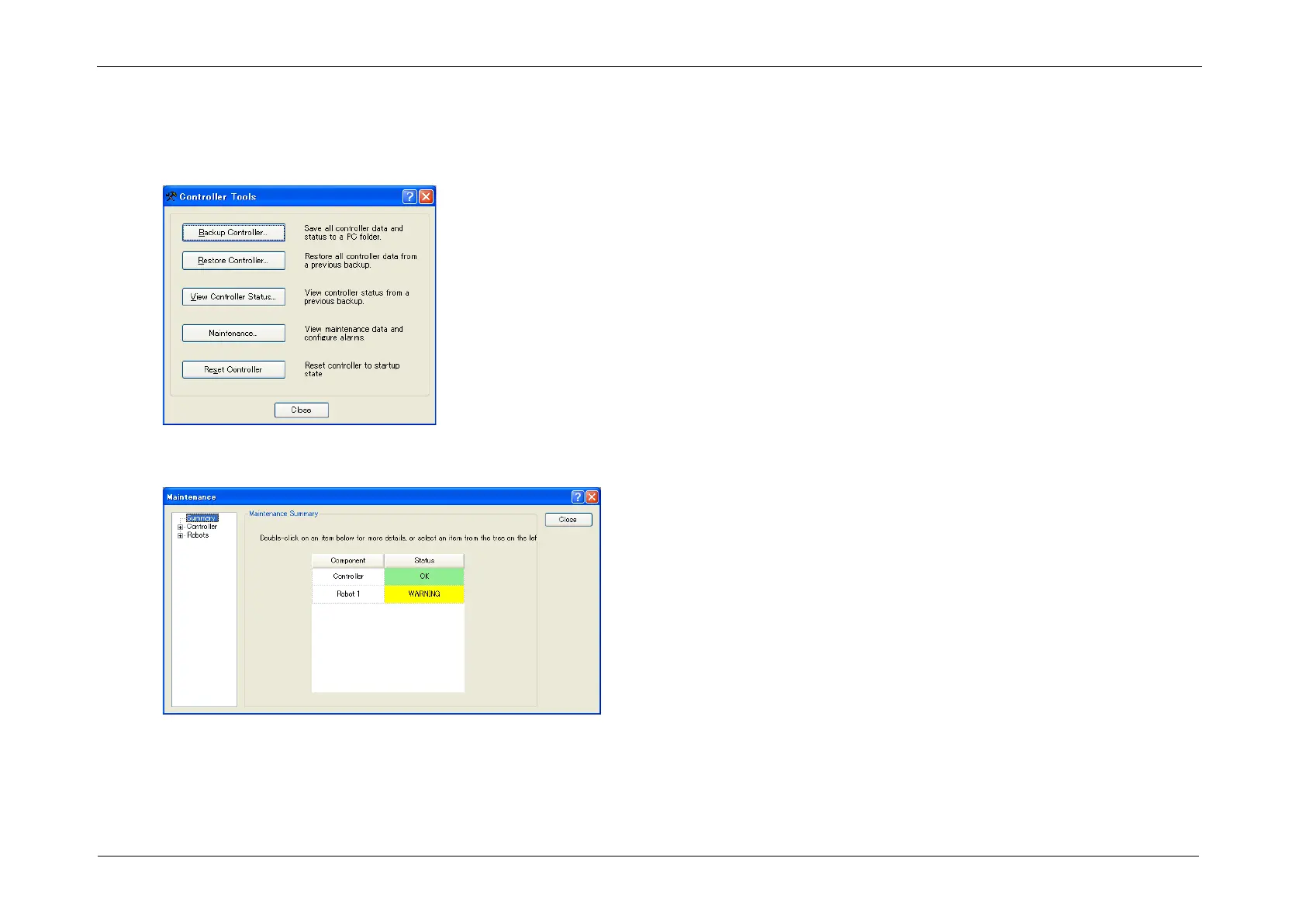 1. Select the EPSON RC+ 7.0 menu- [Tools] - [Maintenance] to display the [Controller Tools] dialog box.