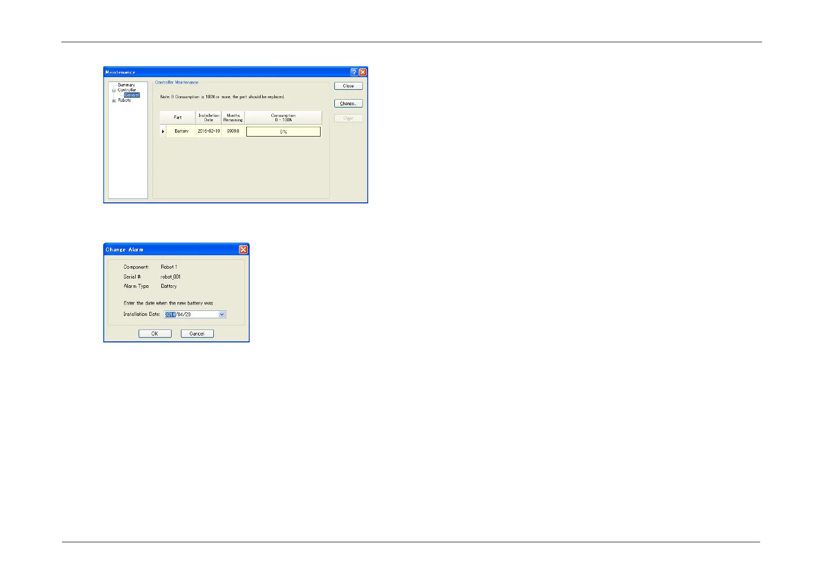 5. Display the [Change Alarm] dialog box and enter any of the followings.