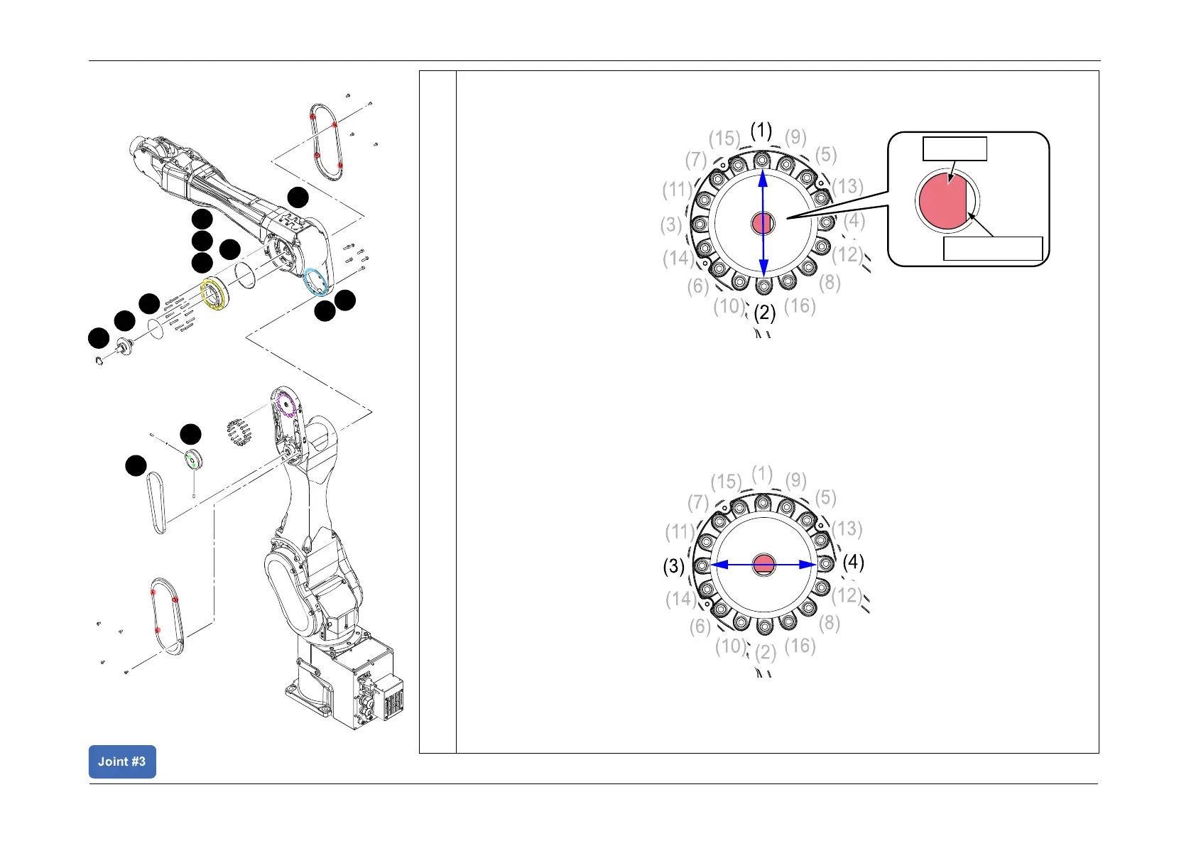 6. Tighten screws (3) and (4) to 40% of the torque value.