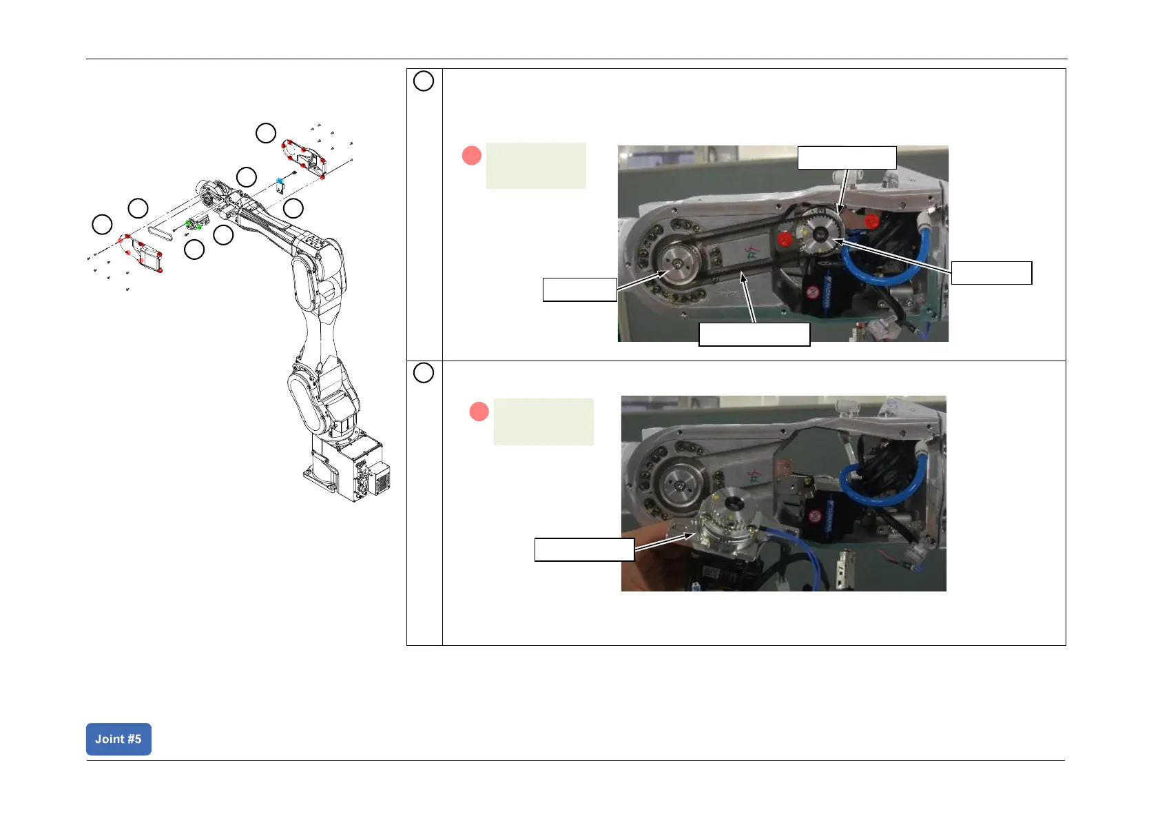 Loosen the screws securing the J5 Motor unit, and remove the J5 Timing Belt.