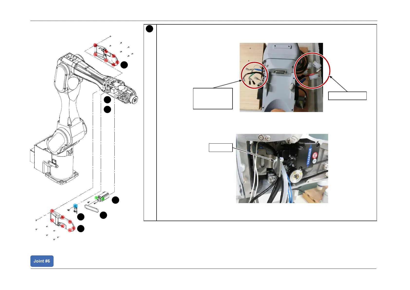 Connect the J6 Motor Connectors, and secure the cables protection plate to Arm4.
