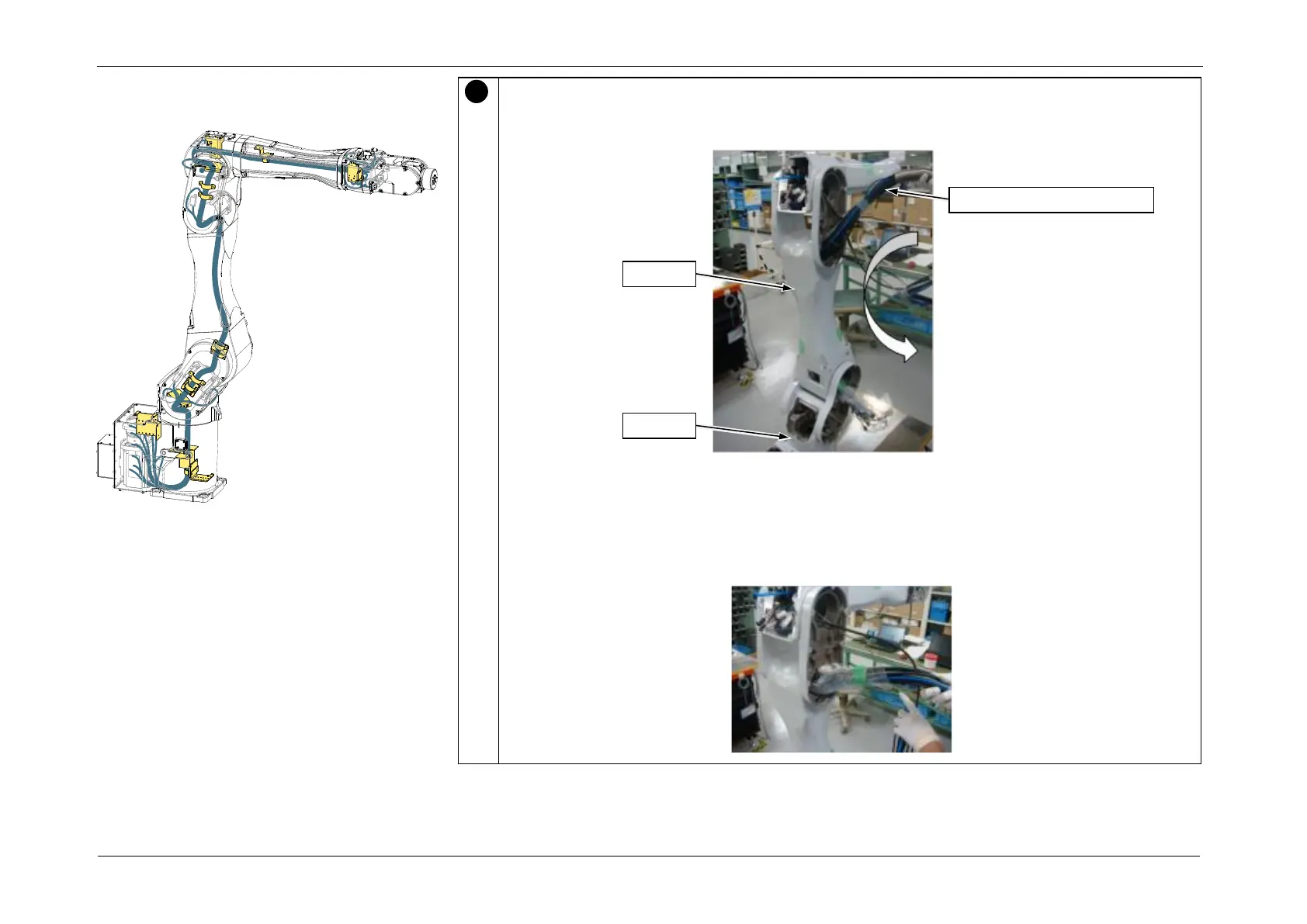 1. Pass the separated Cable Unit (base side) through Arm2 to Arm1.