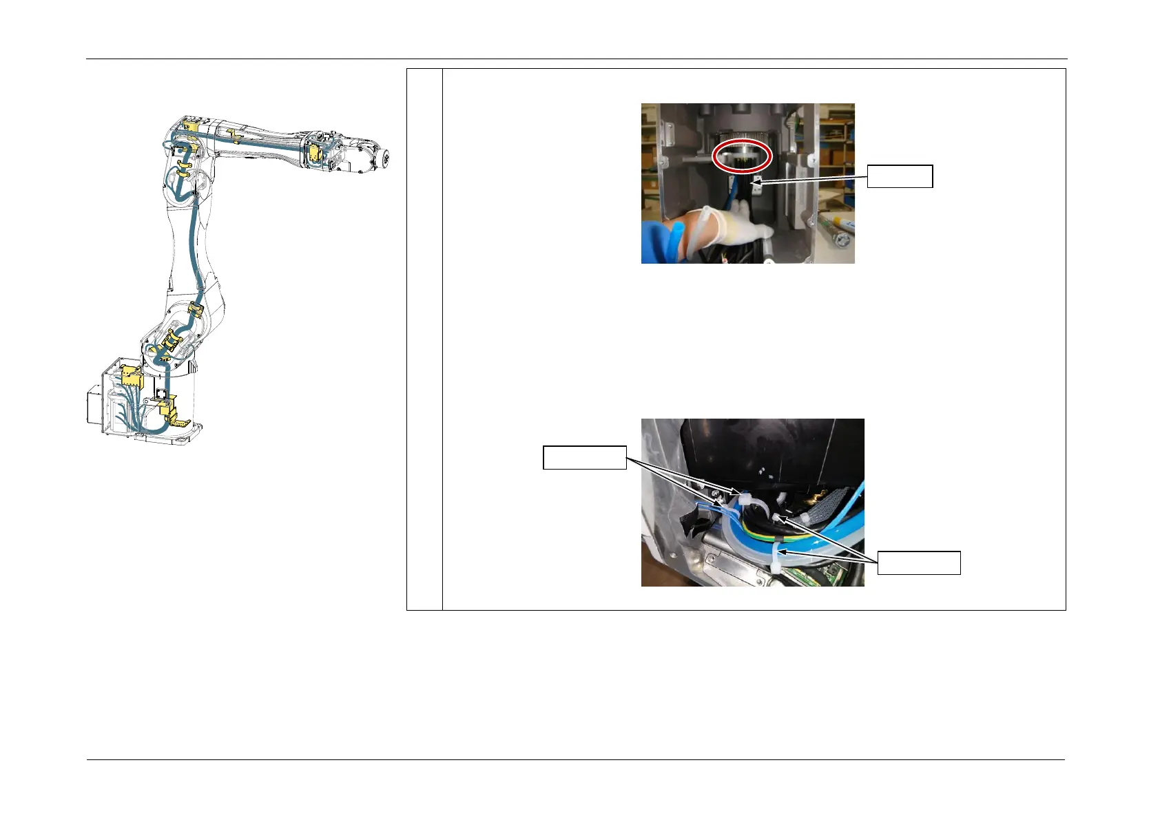 14. Bind the cables using the wire ties passed through the Arm1 cable fixing plate.