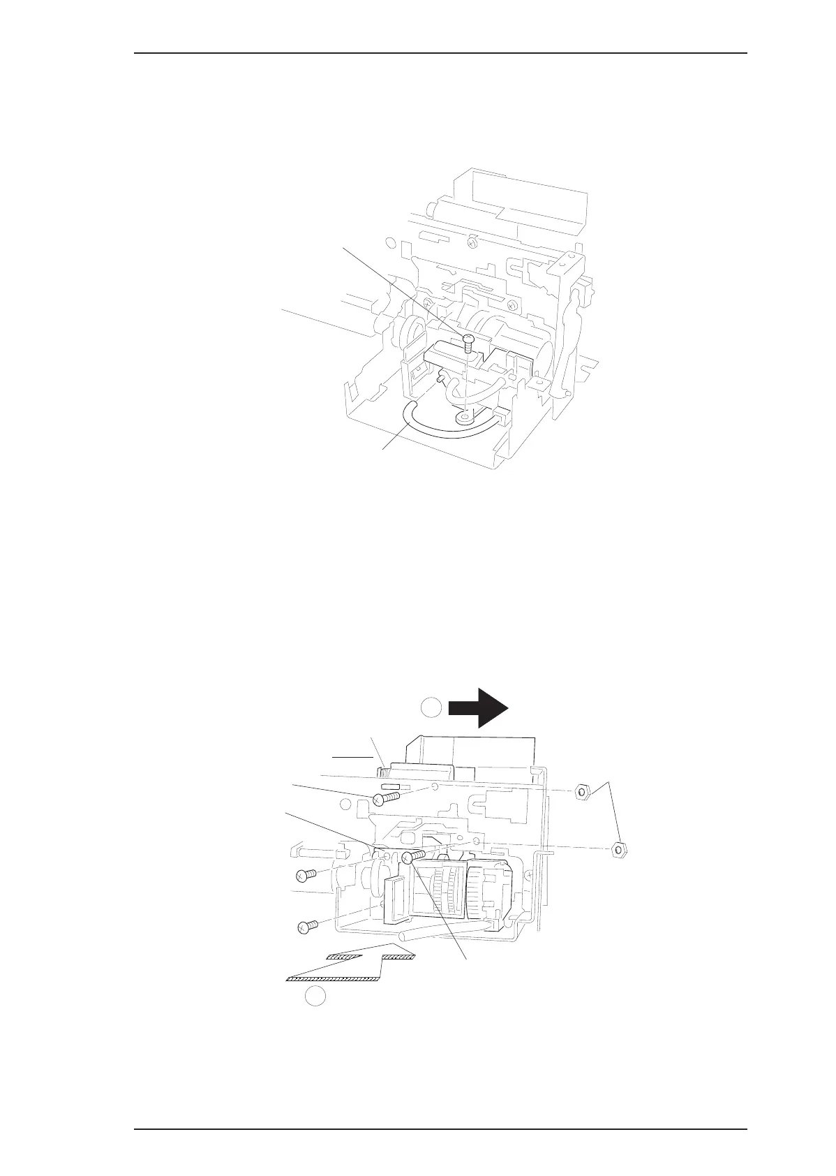 7. Release a tension spring securing the paper pick up trigger holder to the pump mechanism.