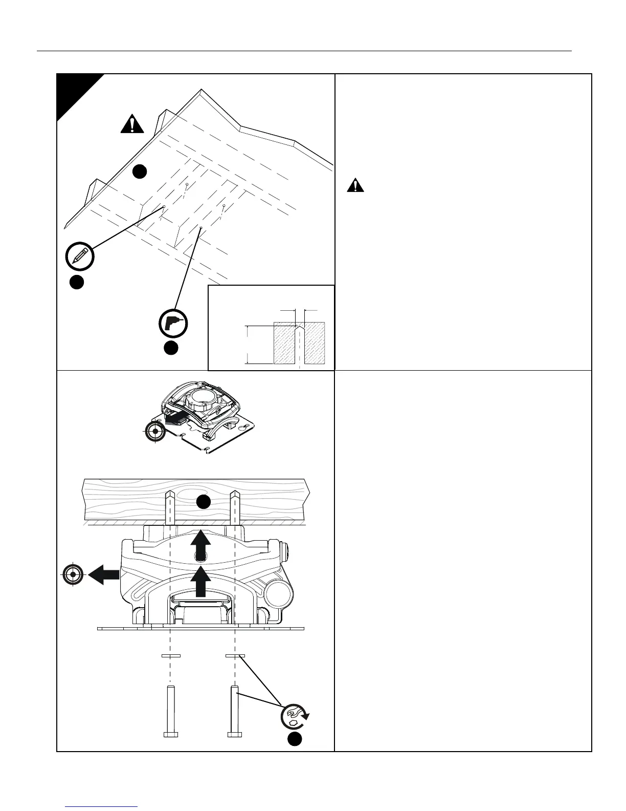 3. Perfure quatro orifícios piloto de 1/8" (3 mm) de