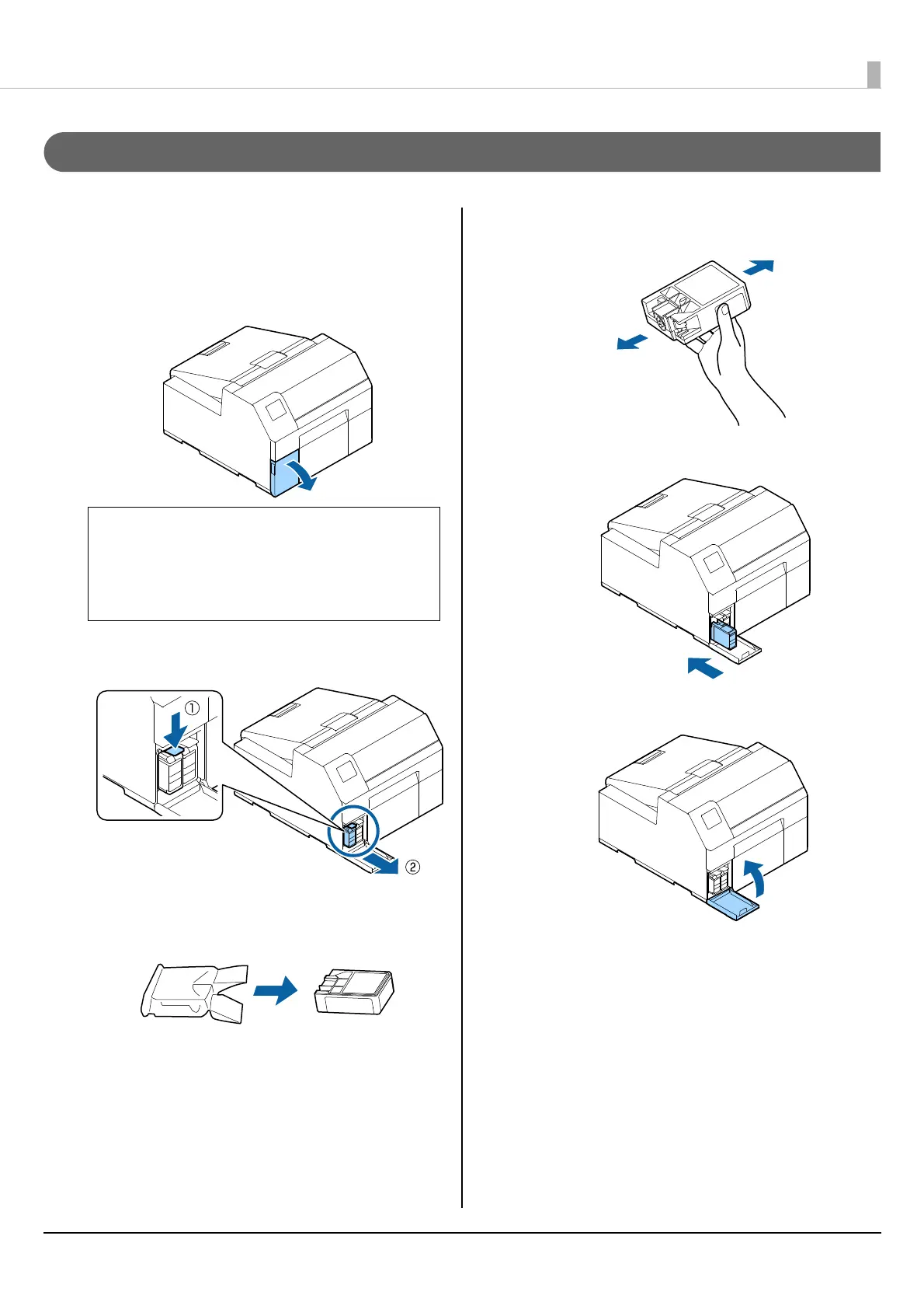 For replacing cyan or yellow cartridge, open
