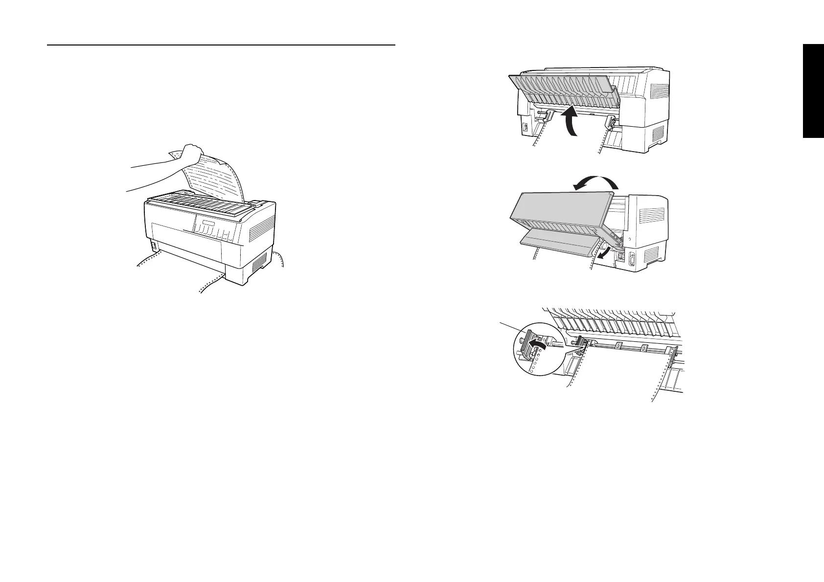 5. Load the new paper. See “Loading Paper On the Front Tractor” on page 9