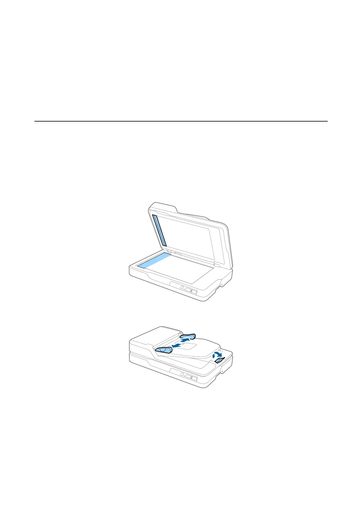 Remove any documents from the scanner glass. Make sure there is no dust or dirt on the glass and the clear part shown