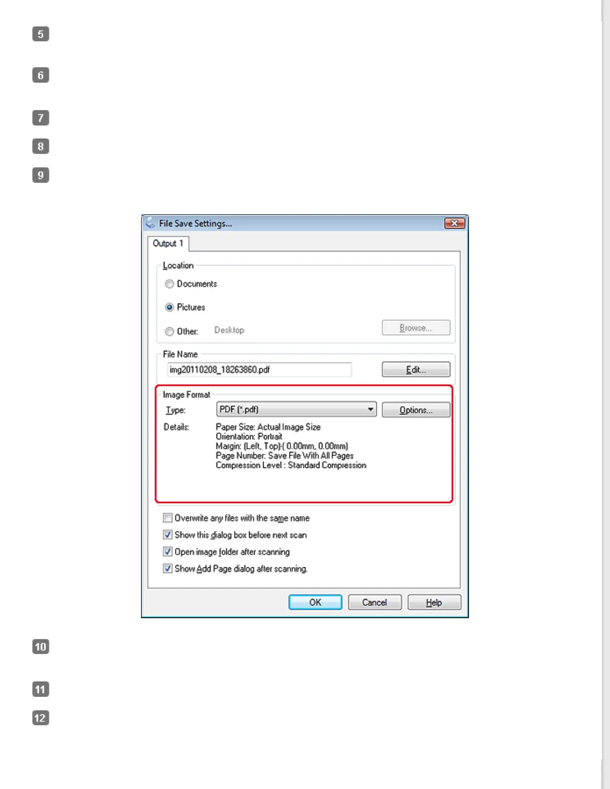 Click Options, then adjust settings in the EPSON PDF Plug-in Settings window as necessary. See Selecting PDF