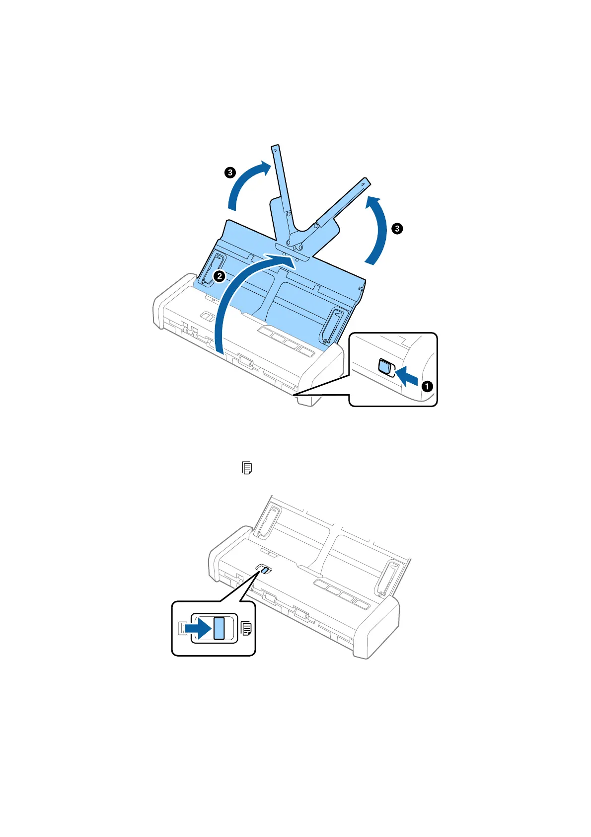 1. Slide the input tray open lever to the le, open the input tray, and then pull out the input tray extension.