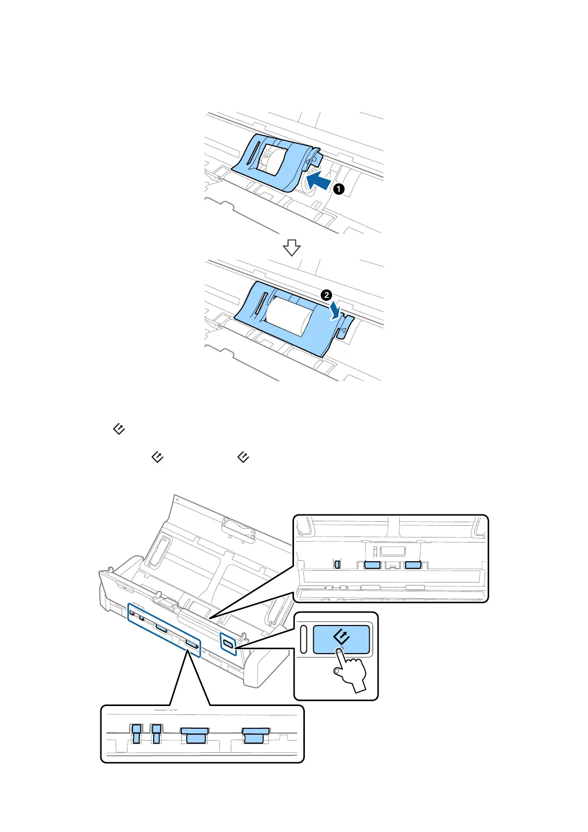 button. Press the   button to move the rollers, and then wipe the surface of the rollers
