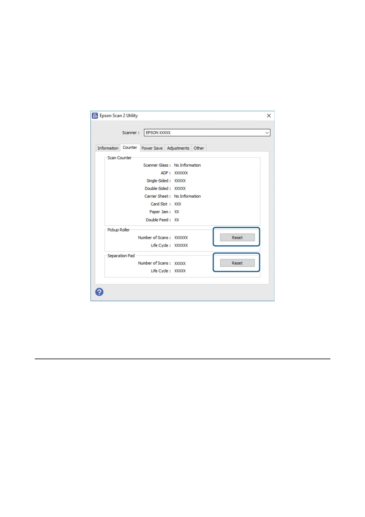 Click Reset for the pickup roller or the separation pad.